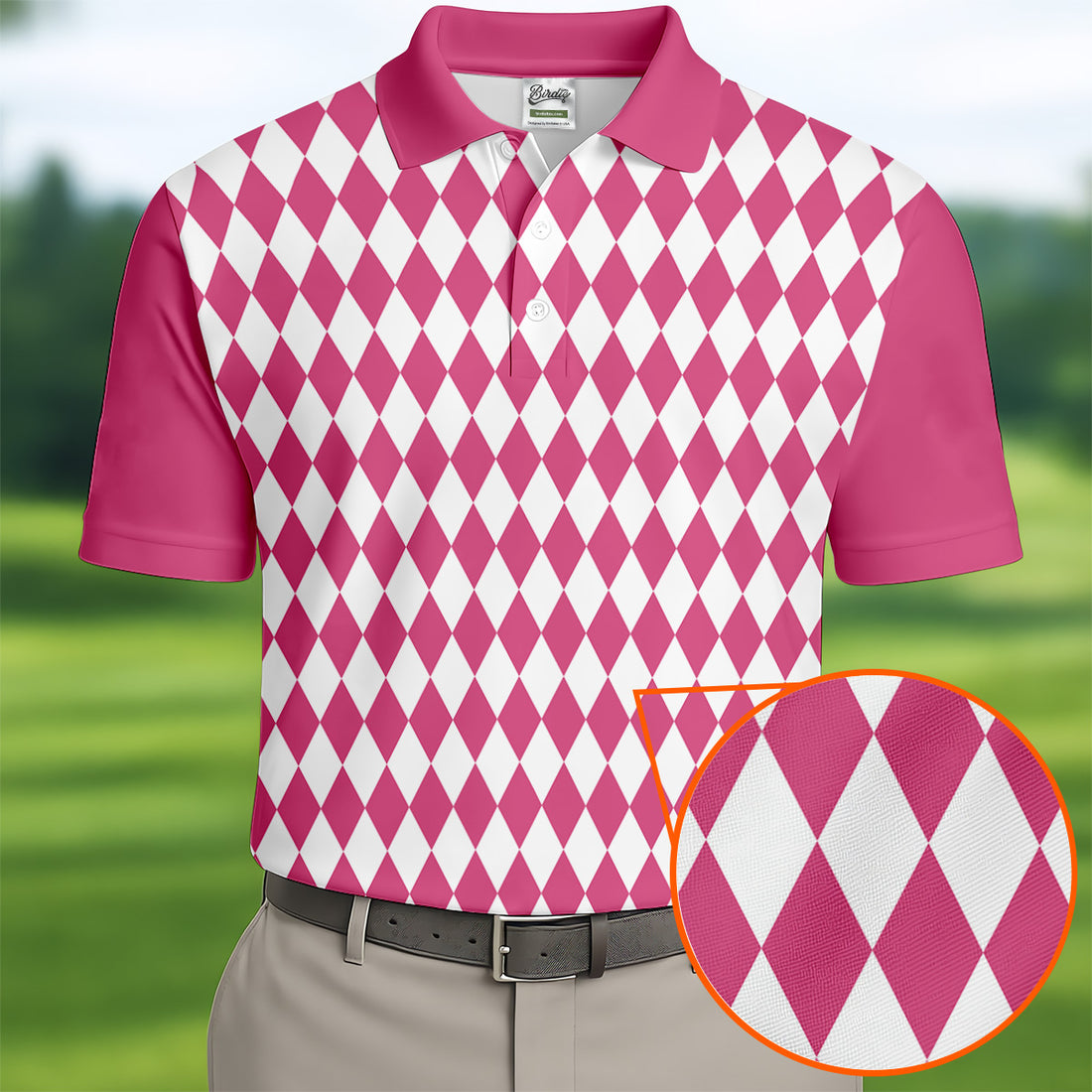 White And Pink Argyle Pattern Men Polo, Polo Shirts For Men, Golf Gift For Men, Golfing Apparel