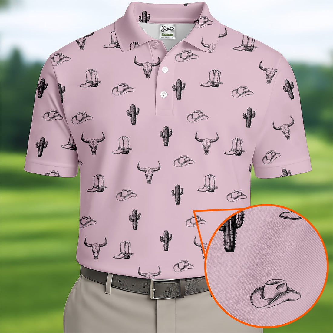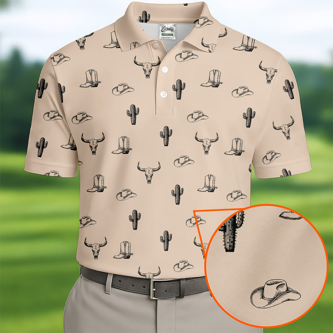 Wild West Cactus Light Brown Western Golf Shirt, Golf Tops For Men, Polo Shirts For Men, Golfing Apparel