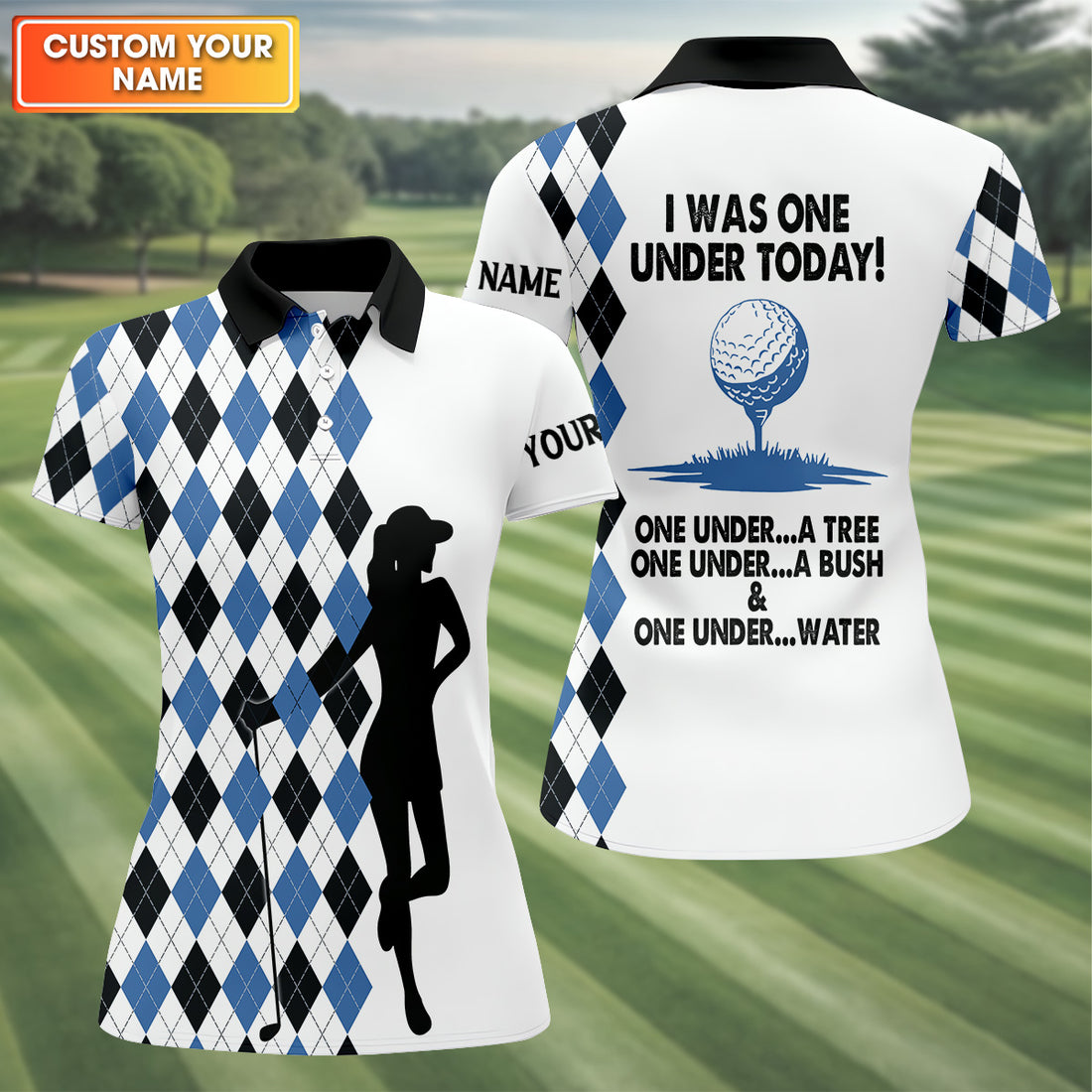 I Was One Under Today Blue Black Argyle Fun Womens Golf Shirts, Ladies Golf Tops, Unique Gift For Golfer