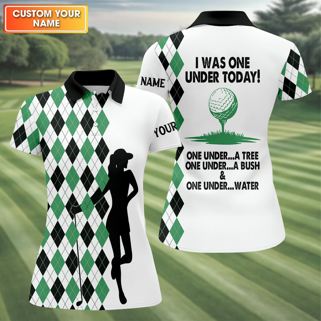 I Was One Under Today Green Black Argyle Fun Womens Golf Shirts, Ladies Golf Tops, Unique Gift For Golfer