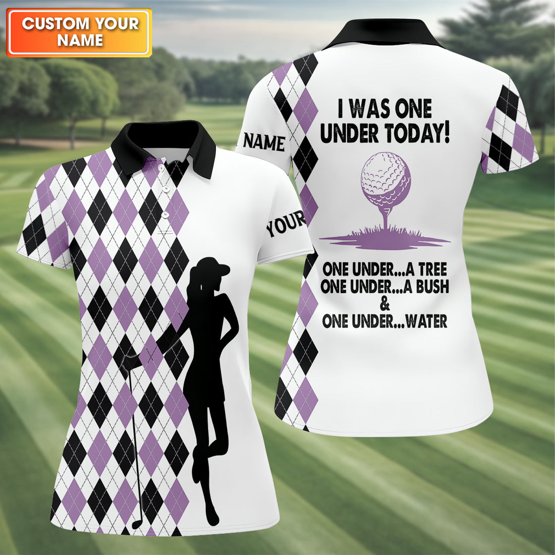 I Was One Under Today Purple Black Argyle Fun Womens Golf Shirts, Ladies Golf Tops, Unique Gift For Golfer