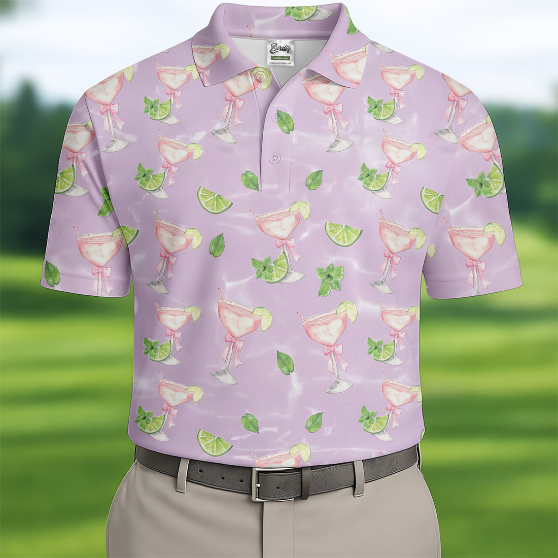 Margarita Golf Tops For Men, Pink Drink Patterned Golf Shirts, Cute Golf Outfit, Polo For Men