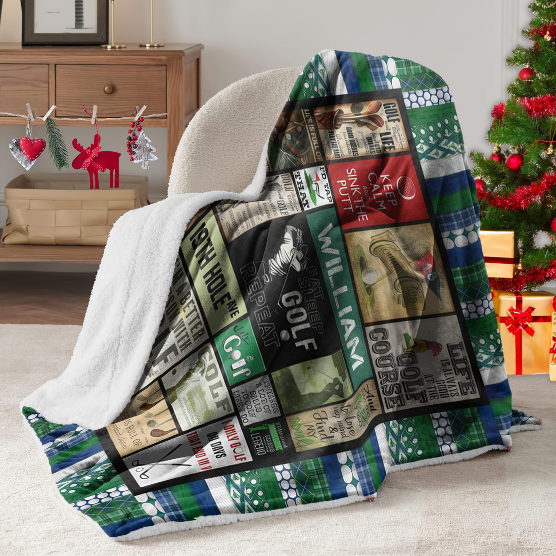 Golf Themed Quilt Blanket, Gift For Golfers, Golf Gift Ideas