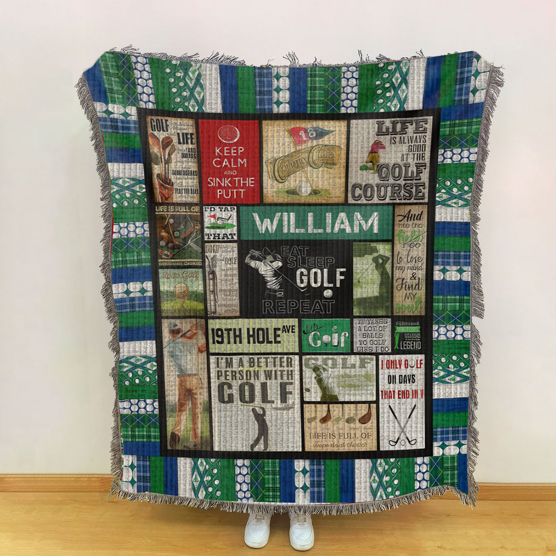 19th Hole Woven Blanket, Gift For Golfers, Golf Gift Ideas