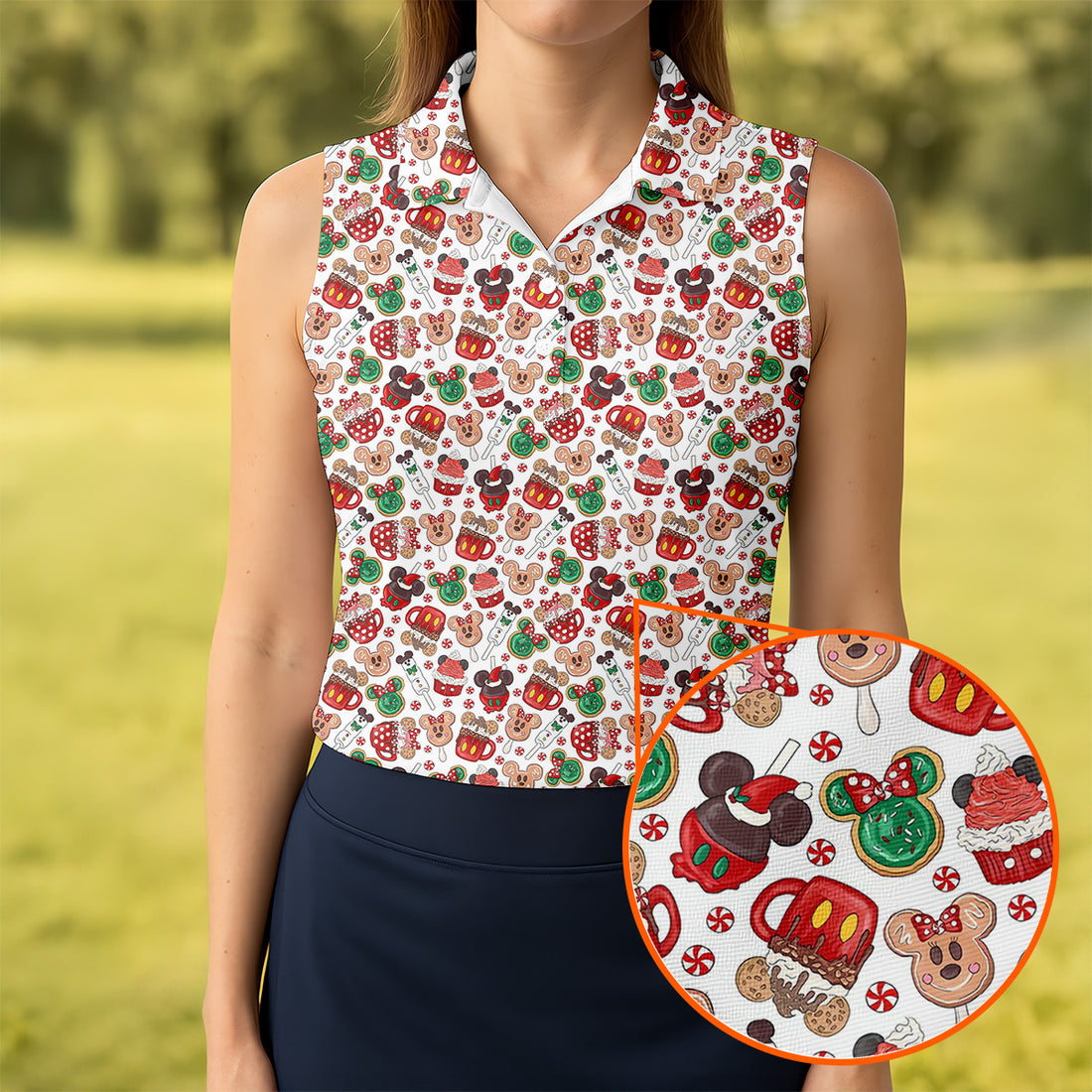 Christmas Sweets Pattern Women Golf Top, Cartoon Print Ladies Golf Polos, Christmas Golf Shirt, Golfing Apparel