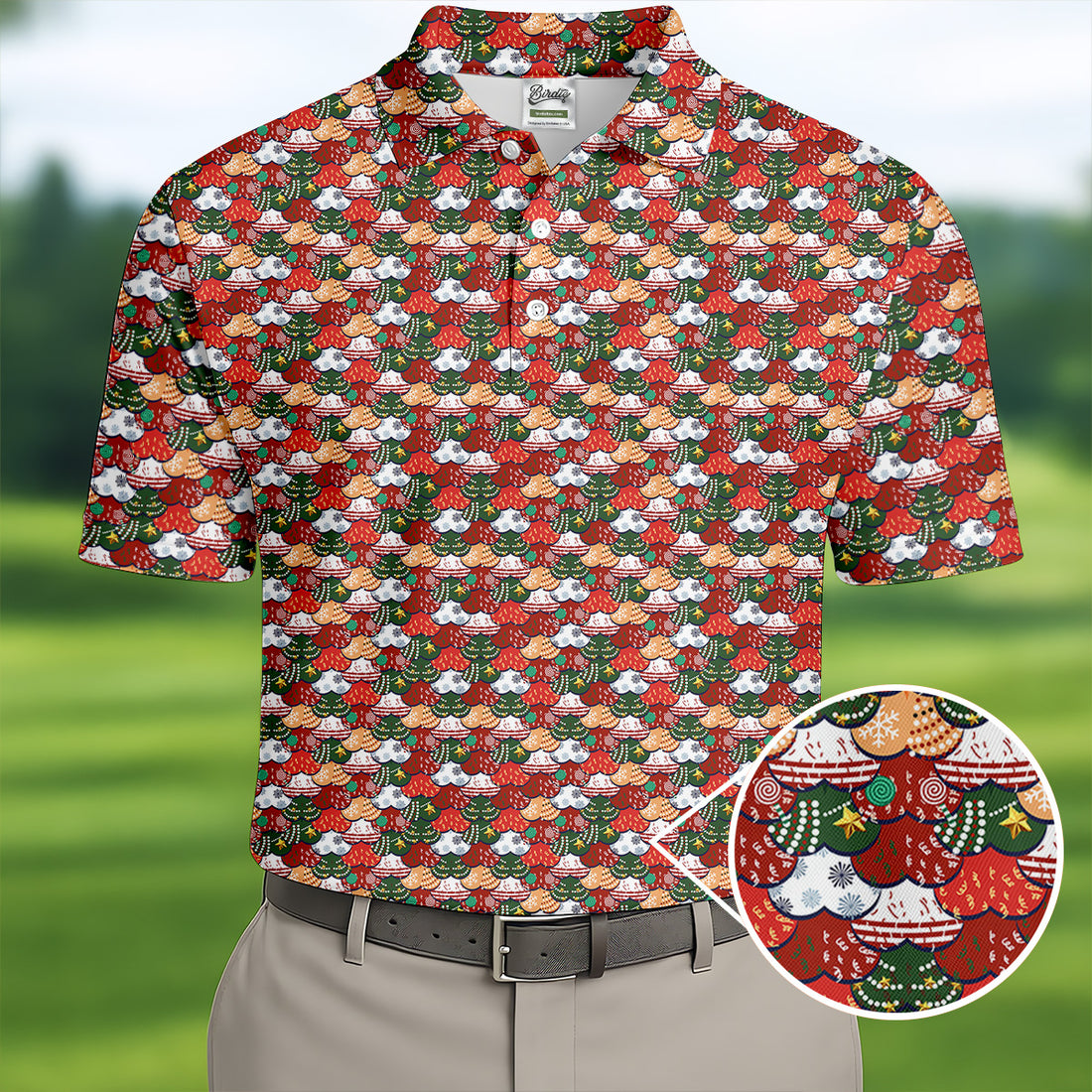 Neon Christmas Retro Style Men's Golf Polo Shirts, Christmas Golf Shirt, Polo Shirts For Men