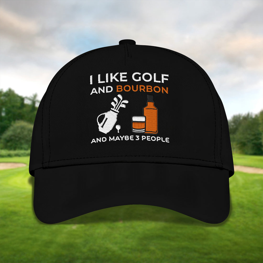 I Like Golf And Bourbon Embroidered Baseball Cap, Golf Hat, Dad Golf Gift