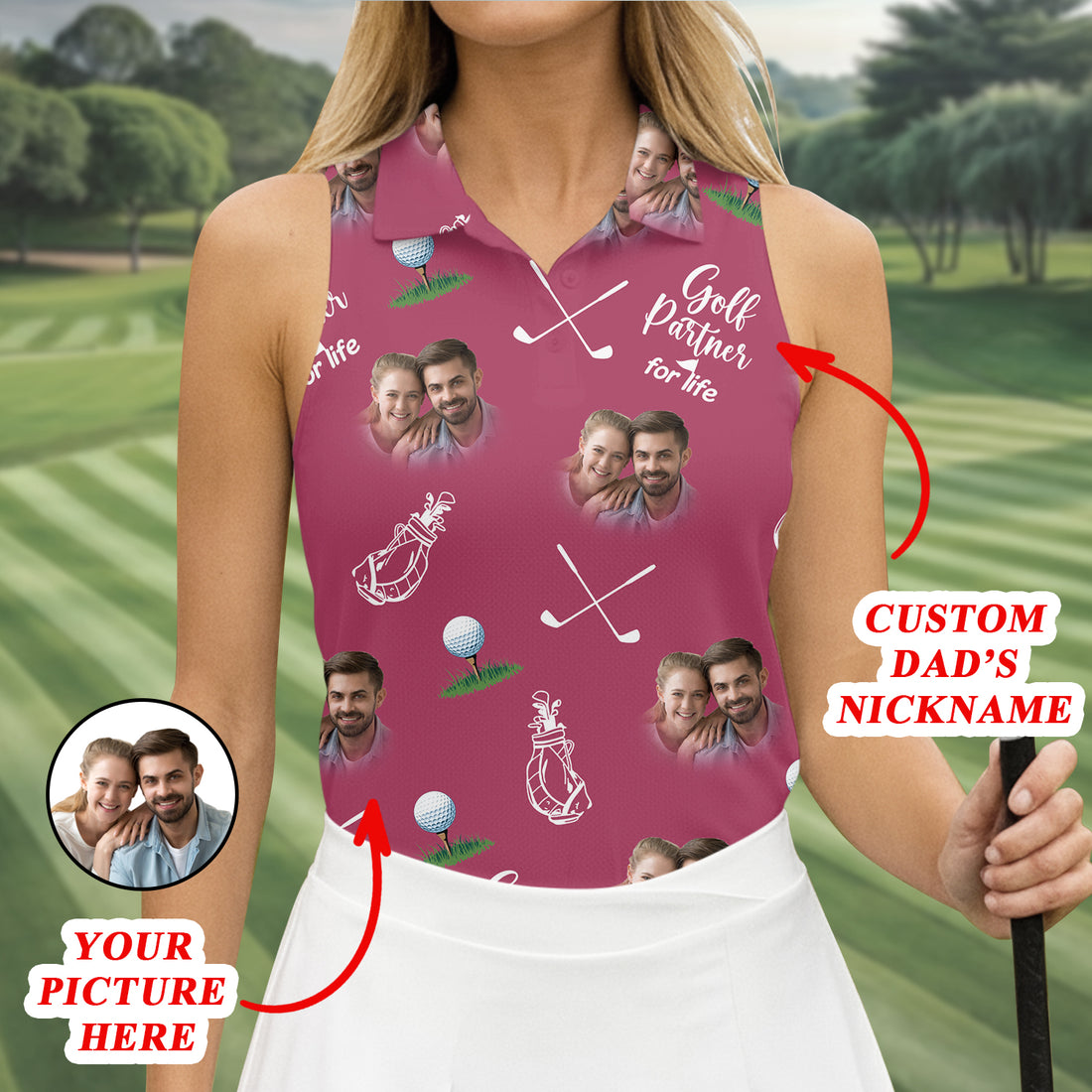 Golf Partner For Life Custom Photo Pink Purple Golf Tops For Men, Valentines Golf Gift, Golf Gift For Men