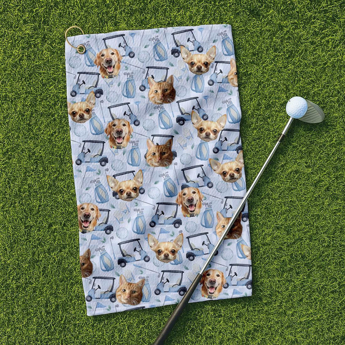 Custom Pet Face Microfiber Waffle Small Funny Golf Towel, Golf Gift For Dad