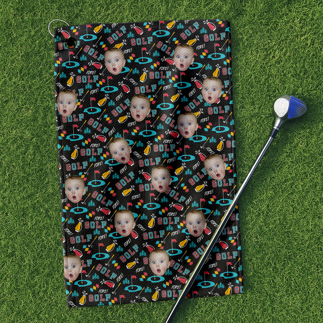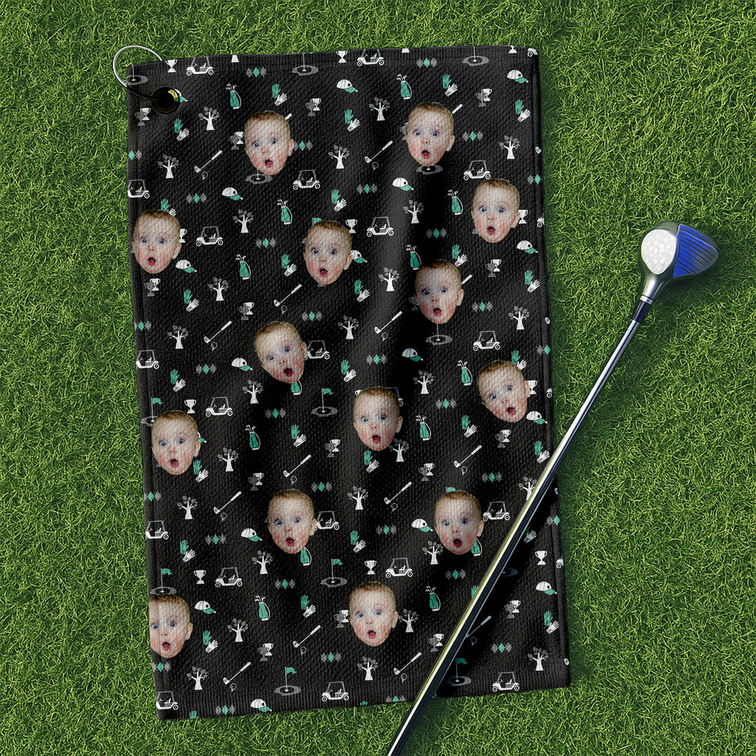 Custom Kid Face Small Funny Golf Towel, Golf Gift For Dad, Cool Golf Towel