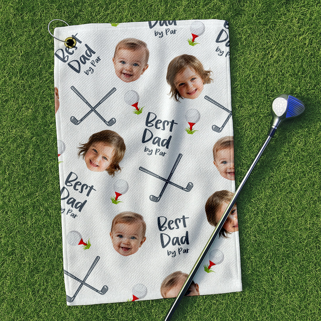 Best Dad By Par Custom Kids Face Funny Golf Towel, Golf Gifts For Dad, Gift For The Golfing Dad