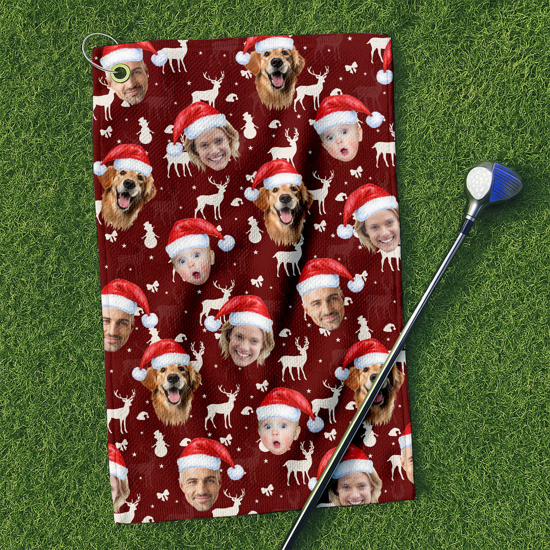 Custom Face Xmas Star Red Golf Towels, Christmas Golf Gift, Custom Golf Accessories