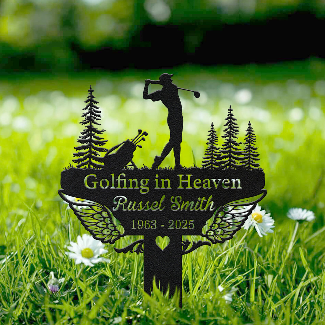 Golf Sign Golfing In Heaven, Custom Golfing Memorial Metal Stake, Golfer Grave Marker, Metal Stake