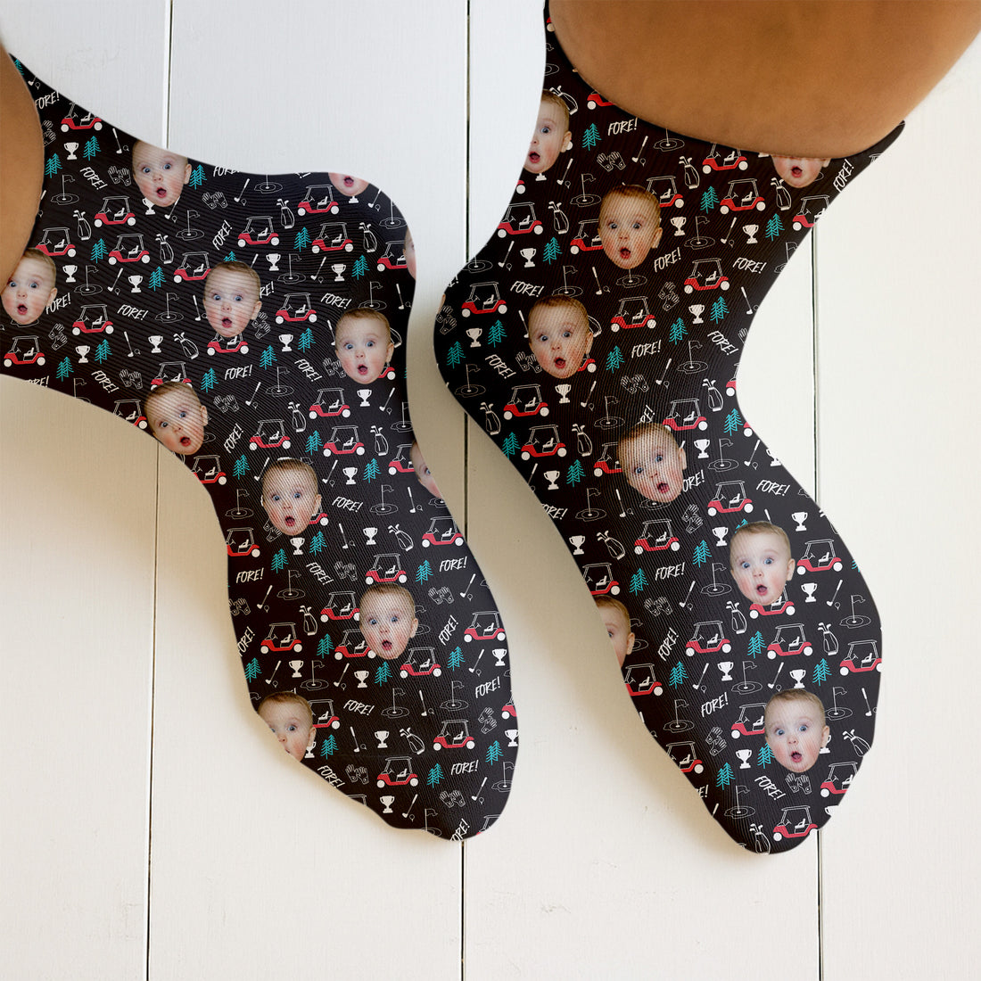 Custom Face Kids Photo, Funny Pattern Socks With Faces, Christmas Golf Gift, Dad Golf Gift