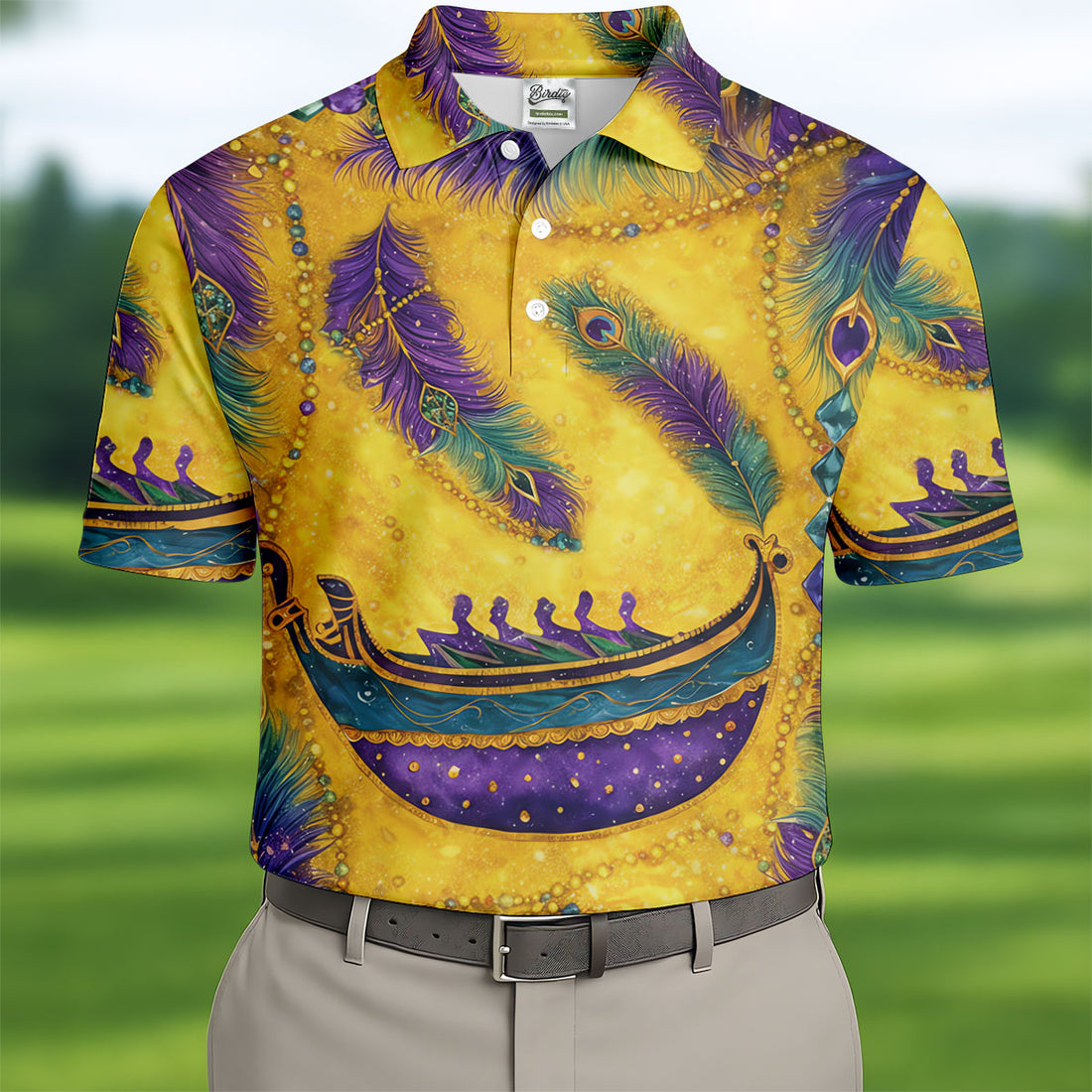 Mardi Gras Day Gradient Art Feather Print Retro Men's Golf Polo Shirts, Golf Shirts For Men