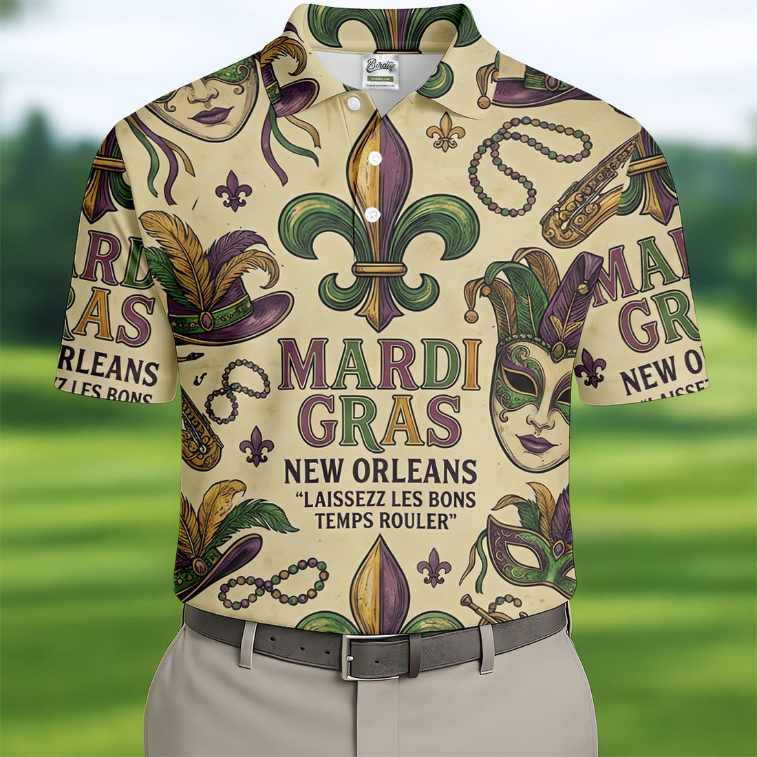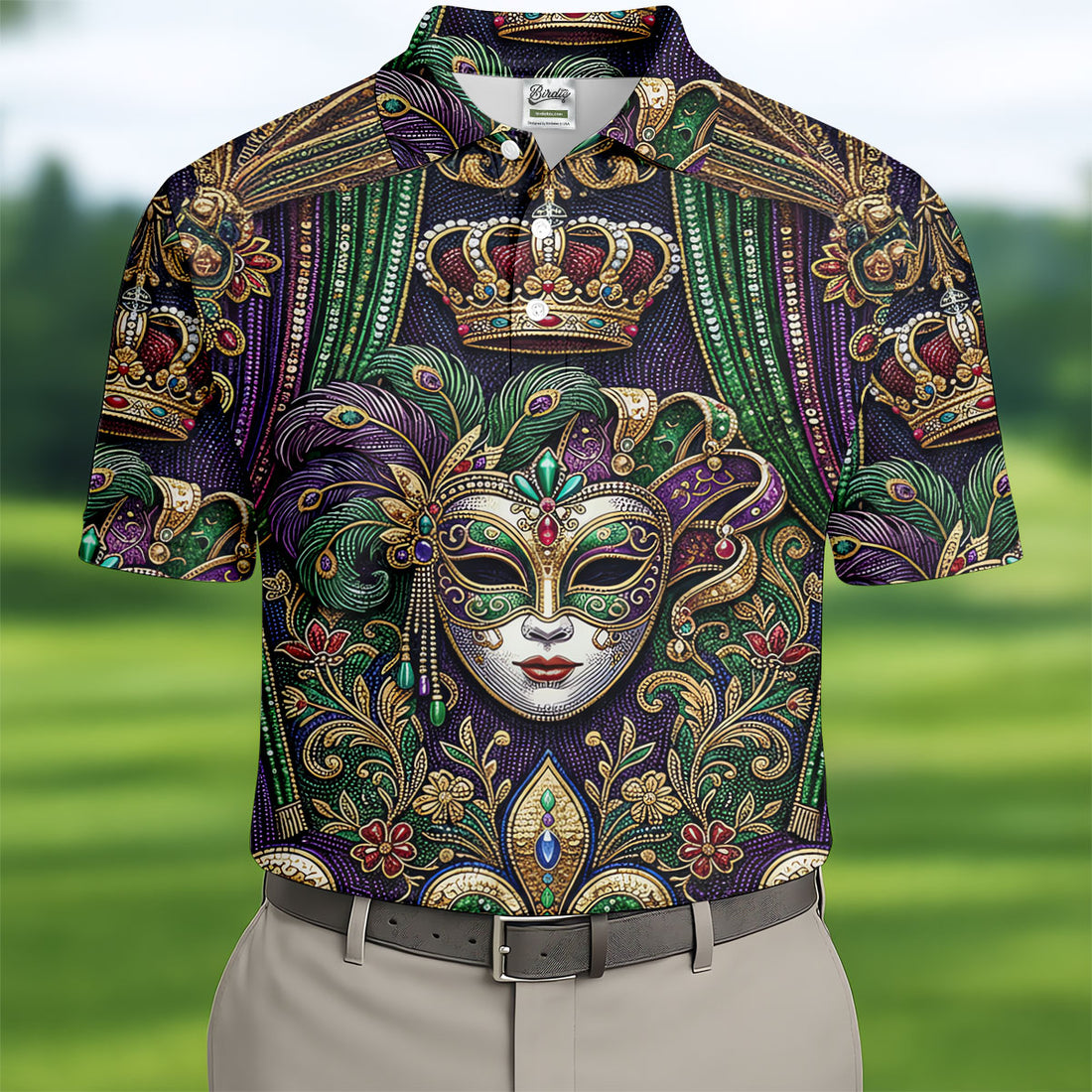 Fleur De Lis Floral Crown Mardi Gras Mask Print Men's Golf Polo Shirts, Golf Shirts For Men