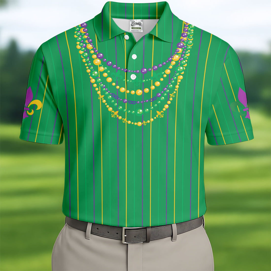 Mardi Gras Beads Necklaces Print Green Golf Shirt, Golf Tops For Men, Polo Shirts For Men, Golf Shirts For Men