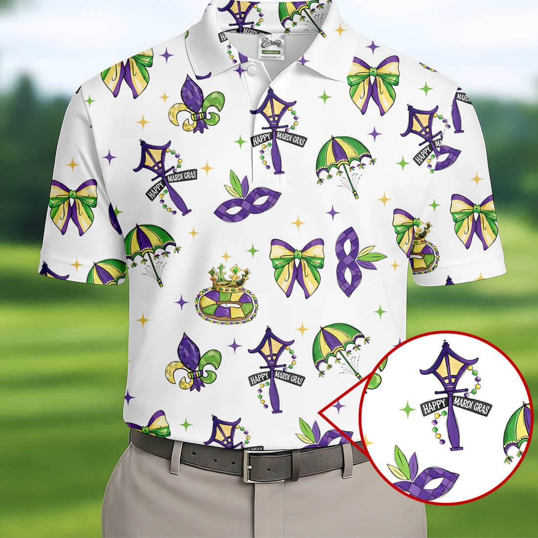 Fleur De Lis Carnival Masks Happy Mardi Gras White Golf Shirt, Polo Shirts For Men, Golf Shirts For Men