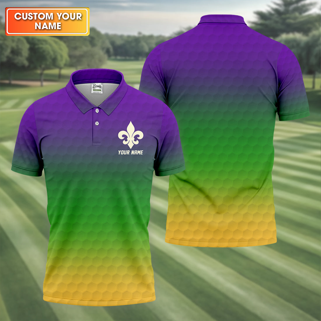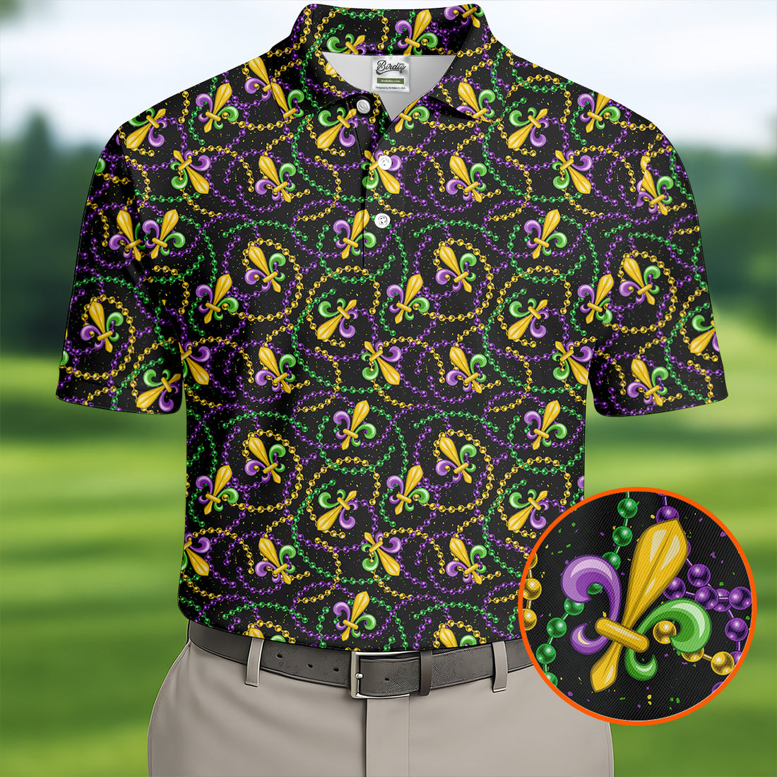 Mardi Gras Beads Purple Green Gold Fleur De Lis Golf Tops For Men, Golf Shirts For Men, Polo Shirts For Men