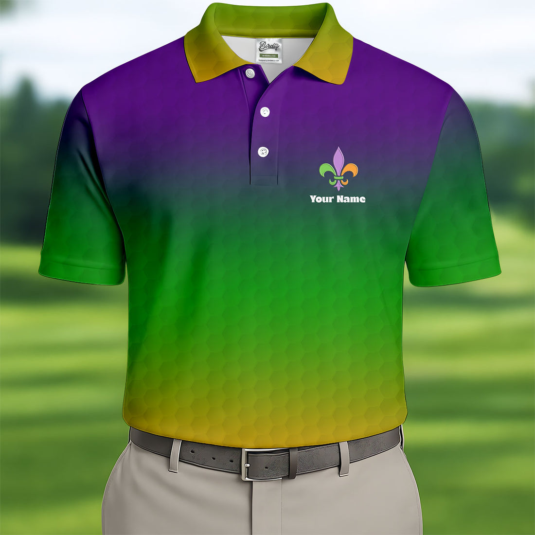 Mardi Gras Purple Gold Green Blended Color Golf Ball Pattern Golf Tops For Men, Polo Shirts For Men