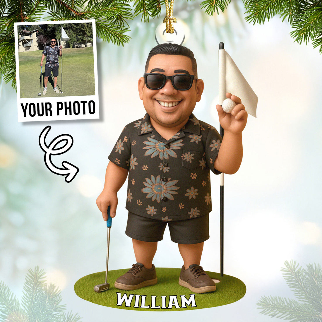 Custom Photo Acrylic Ornament, Golf Christmas Ornaments, Personalized Christmas Golf Gift