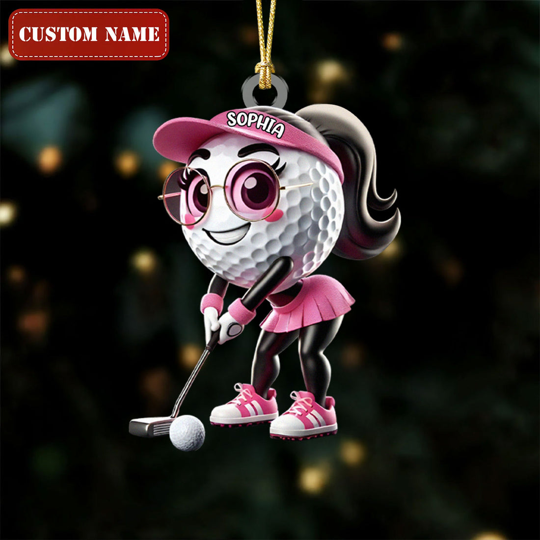 Cute Golf Ball Female Golf Acrylic Ornament, Golf Xmas Ornaments, Golf Christmas Gifts