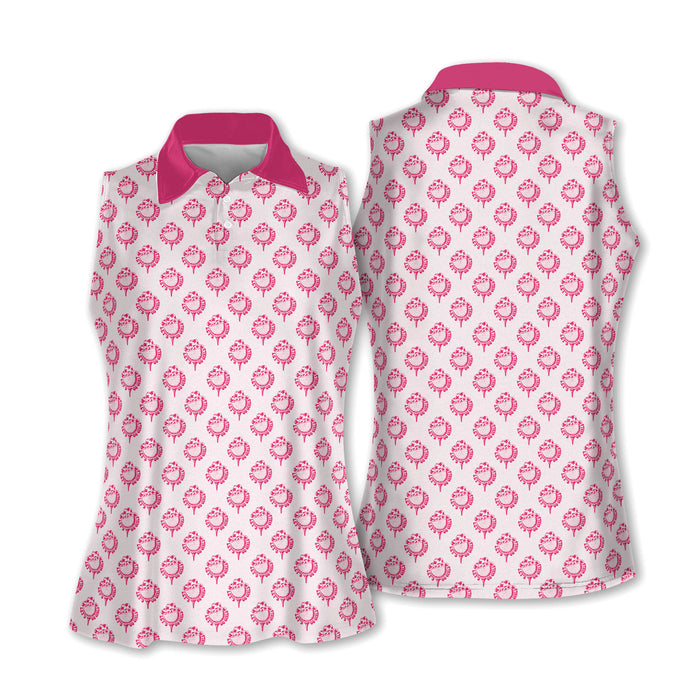 Funny Flamingo Sleeveless Golf Shirt For Women, Golf Pattern Shirt, Cute Womens Golf Clothes