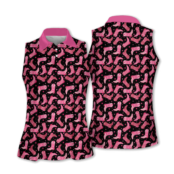 Let's Go Girl Western Golf Shirts Women, Pink Cowgirl Sleeveless Polo Shirt Womens, Patterned Golf Polos