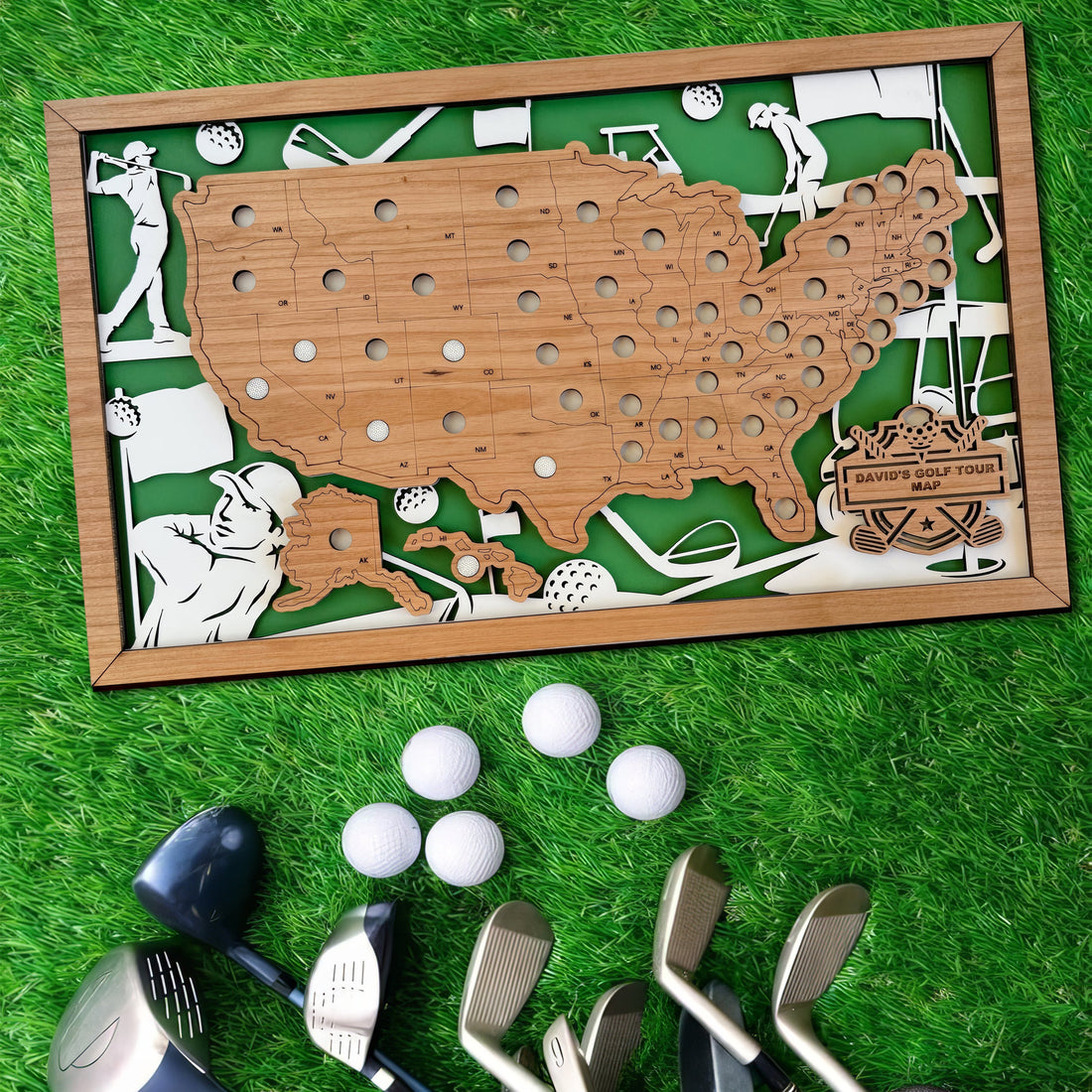 Golf Bucket List Wooden Map, Golf Wall Art, Golf Decor, Golf Gift For Dad