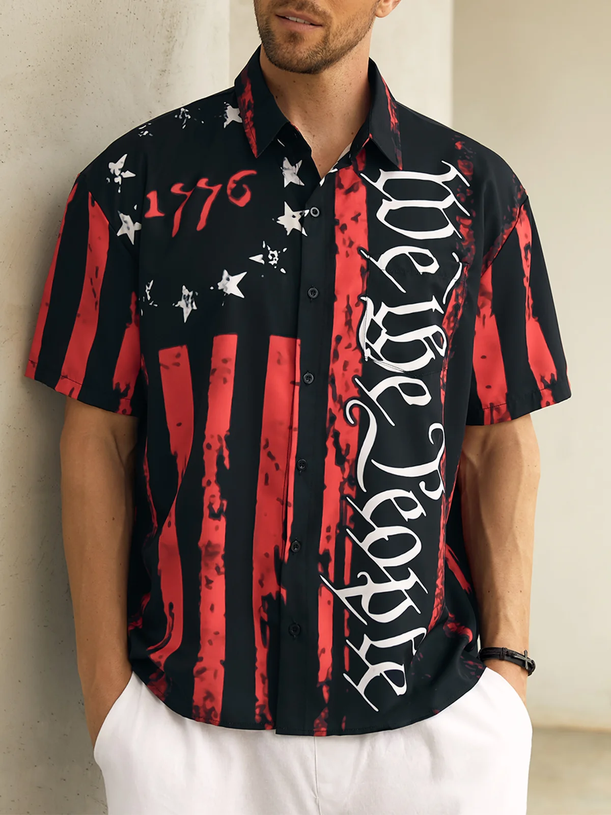 1776 We The People Red And Black Hawaiian Golf Shirt, 250th Anniversary Tropical Vibe Men's Golf Shirt
