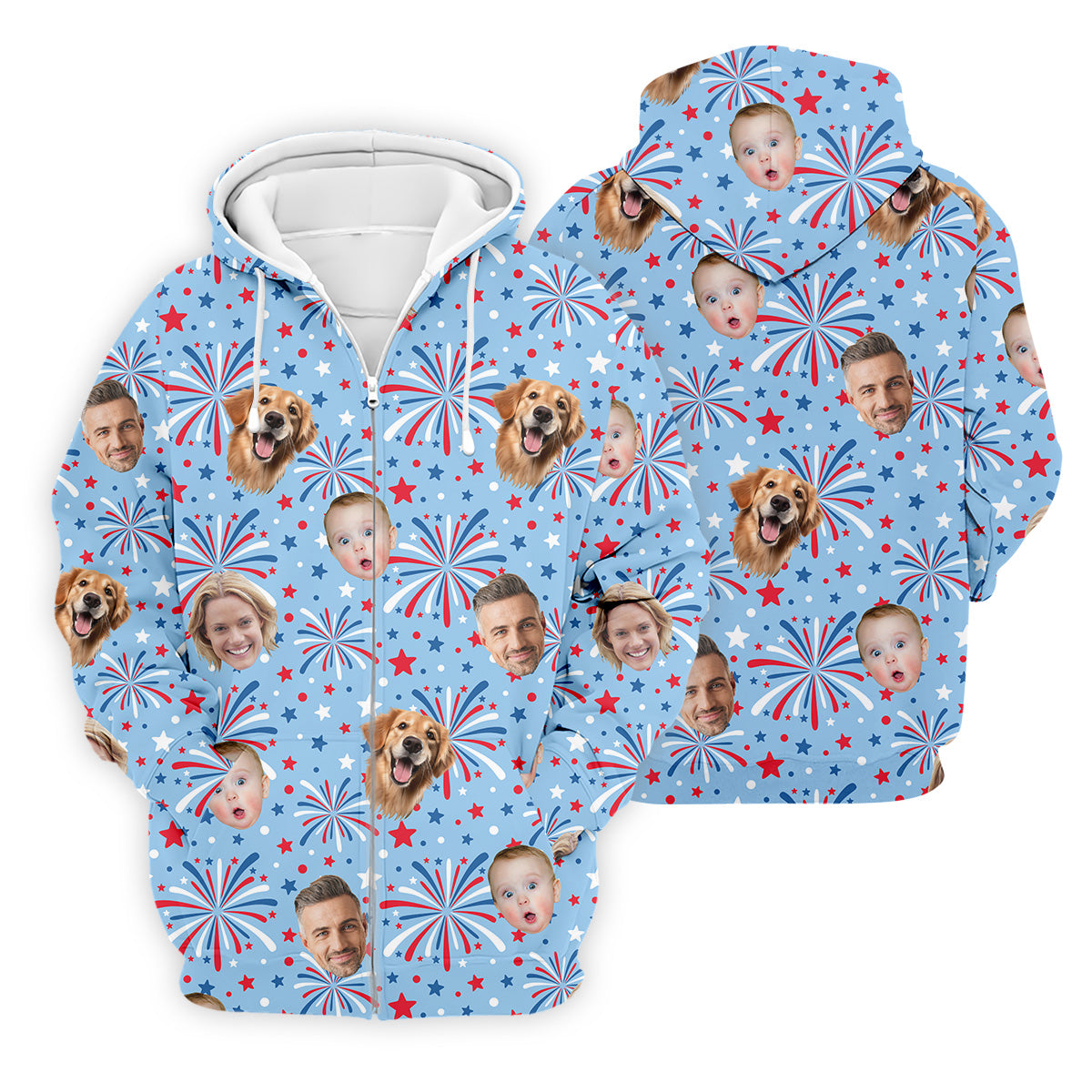4th Of July Custom Shirts With Faces, Patriotic Golf Shirt, Men's Golf Polo Shirt, USA Golf Shirt