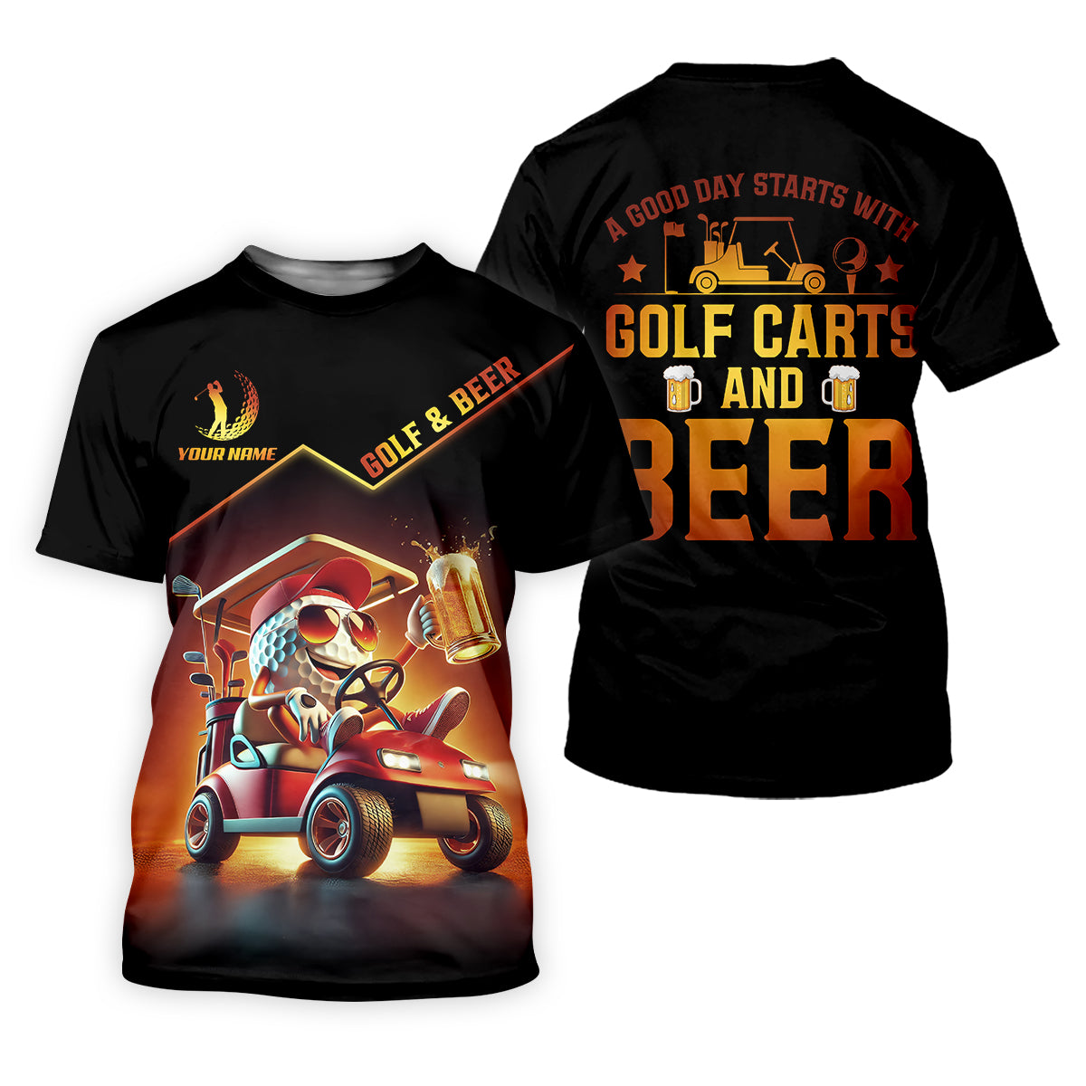 A Good Day Starts With Golf Carts And Beer Funny Golf Polo Shirt, Christmas Golf Gift