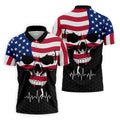 America Flag Skull Custom Golf Polo Shirt, Golf Apparel, Golf Gift For Men