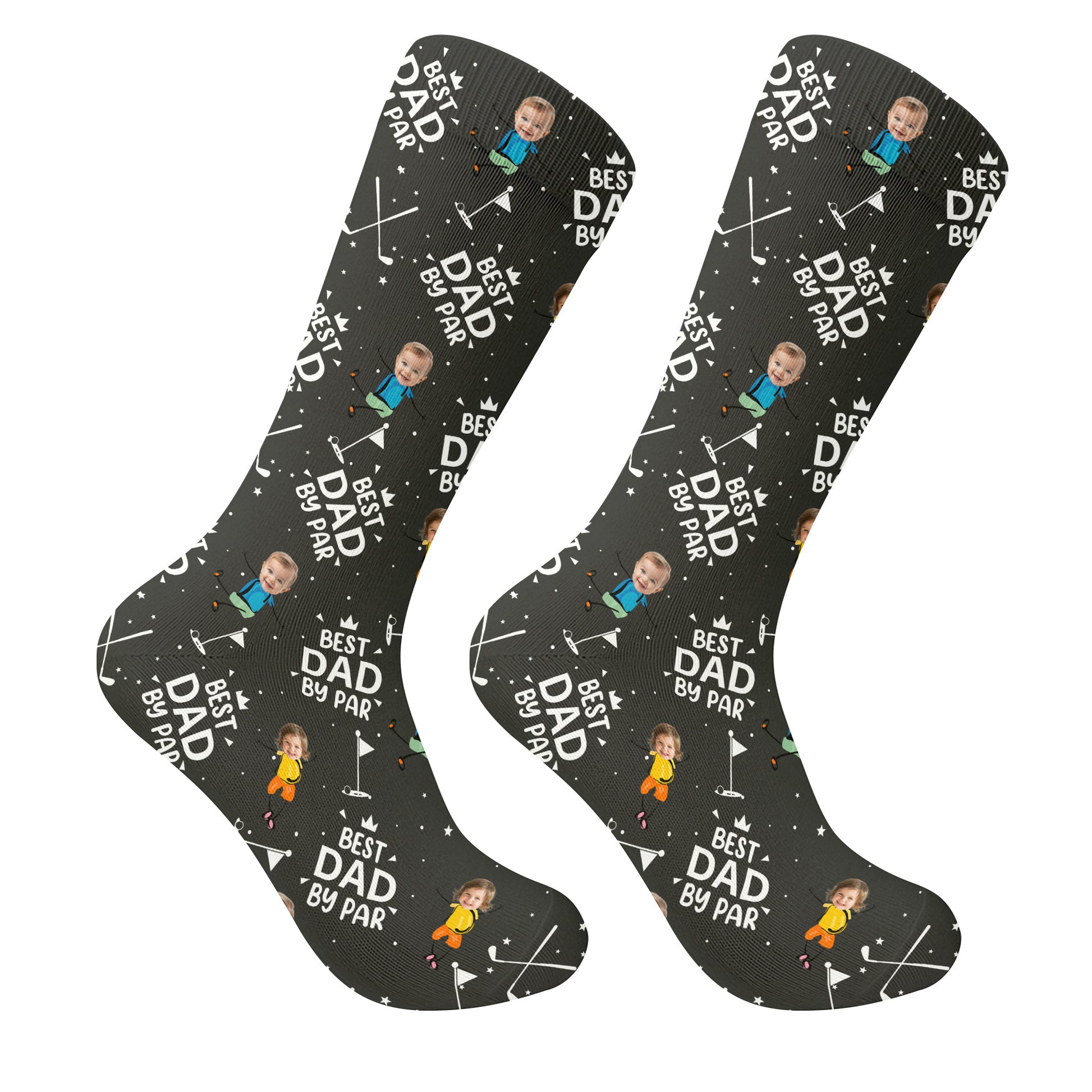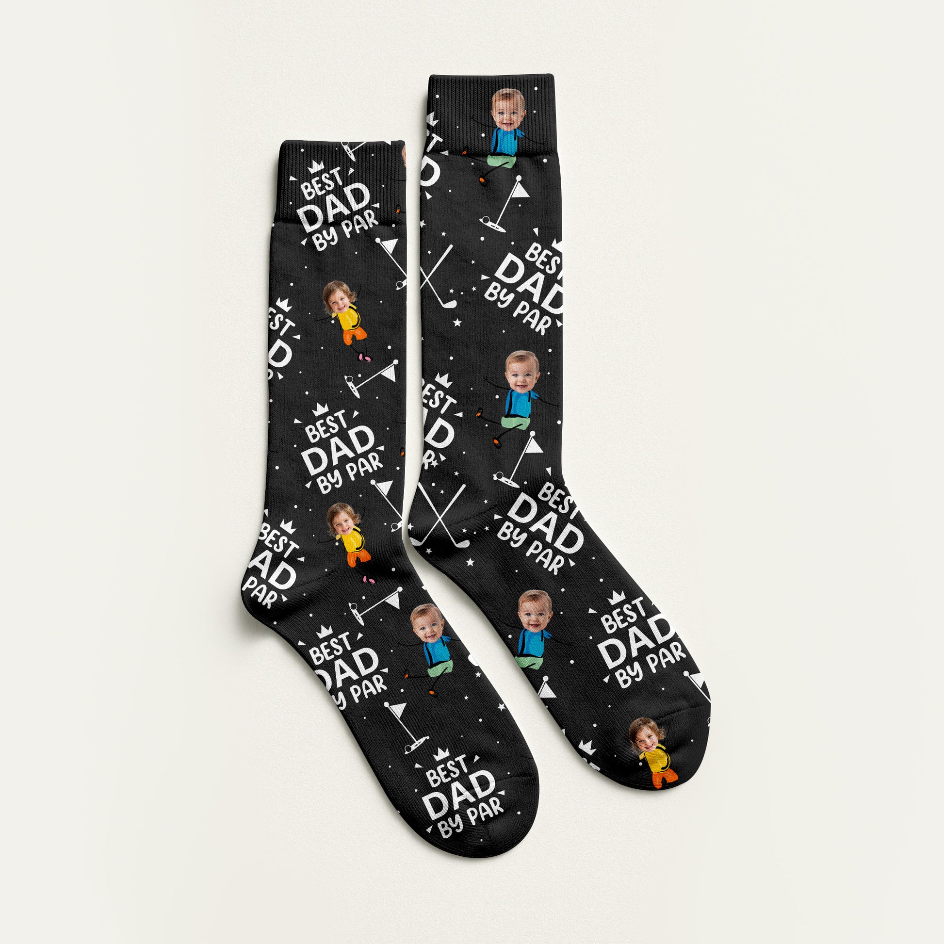 Best Dad By Par Custom Face Black Socks, Fun Socks For Men, Dad Golf Gift, Christmas Golf Gift