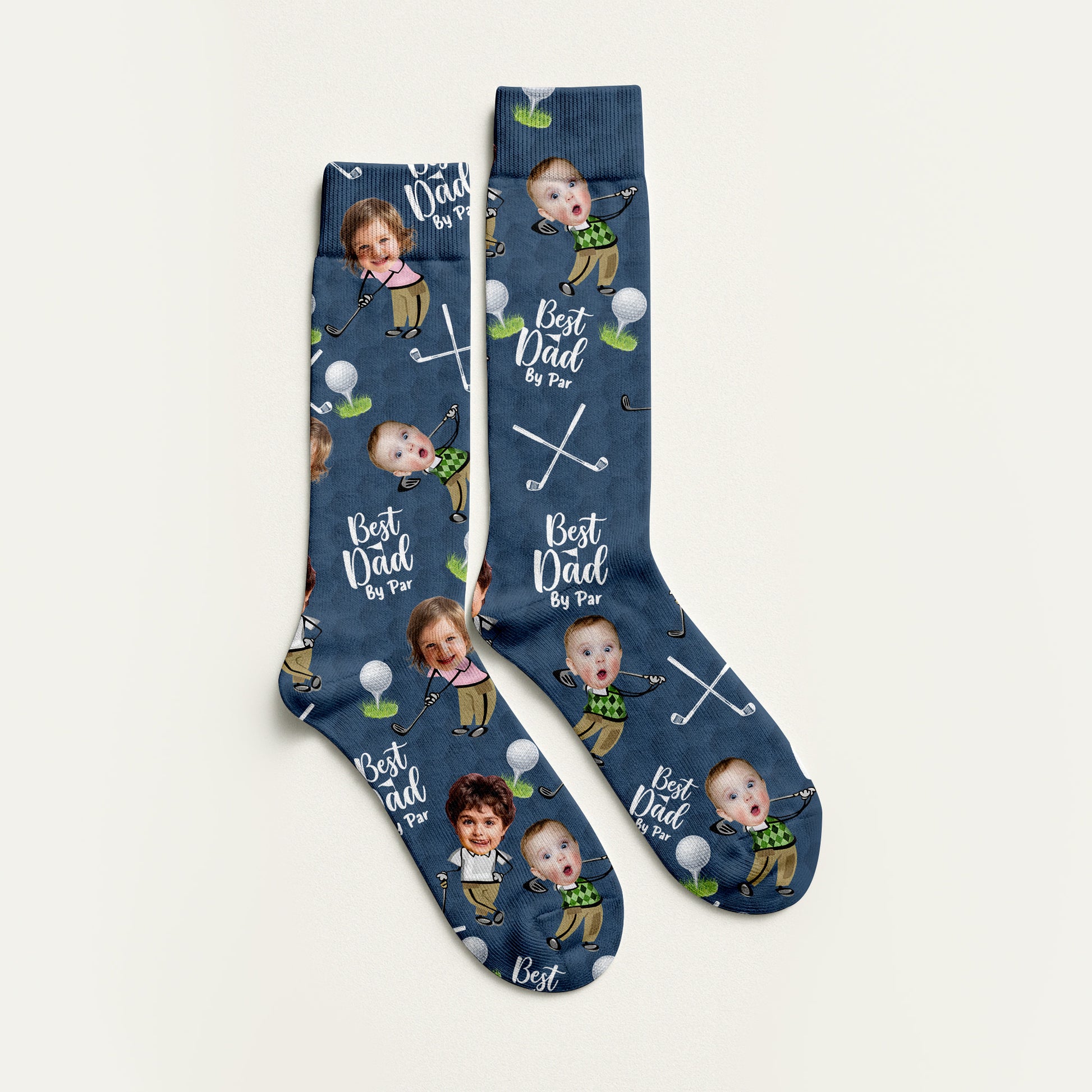 Best Dad By Par Custom Face Kids Photo Blue Socks, Golf Socks For Dad, Fun Socks For Men, Christmas Golf Gift