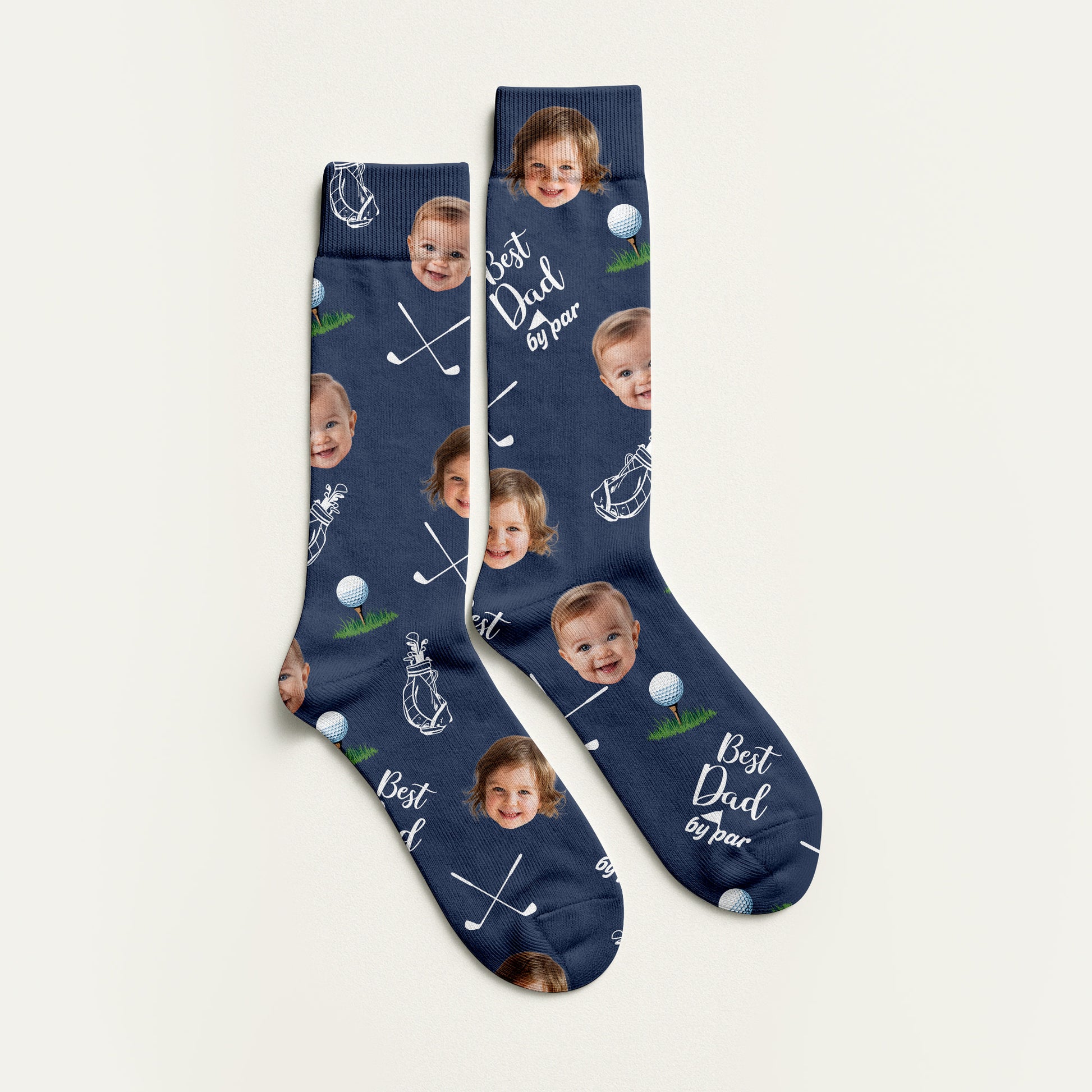 Best Dad By Par Custom Face Kids Photo, Golf Socks, Fun Socks For Men, Christmas Golf Gift