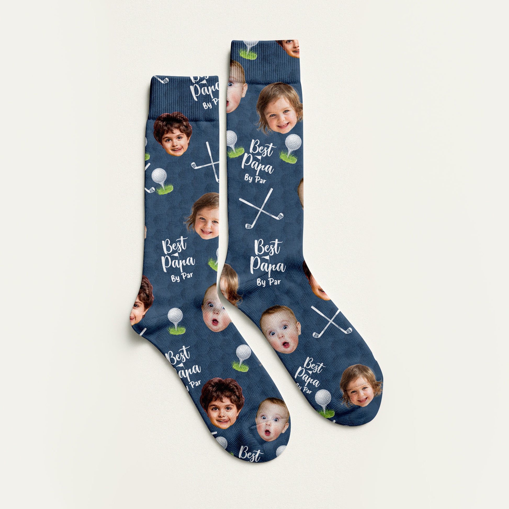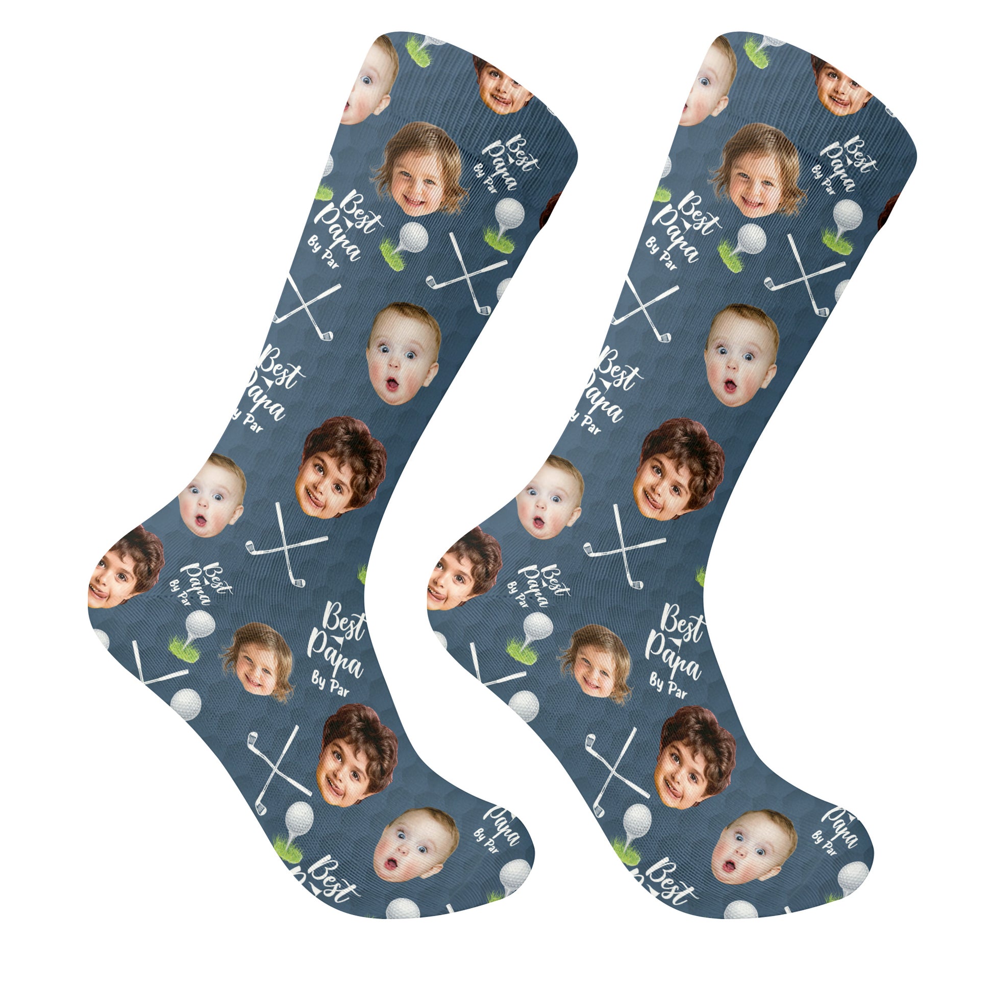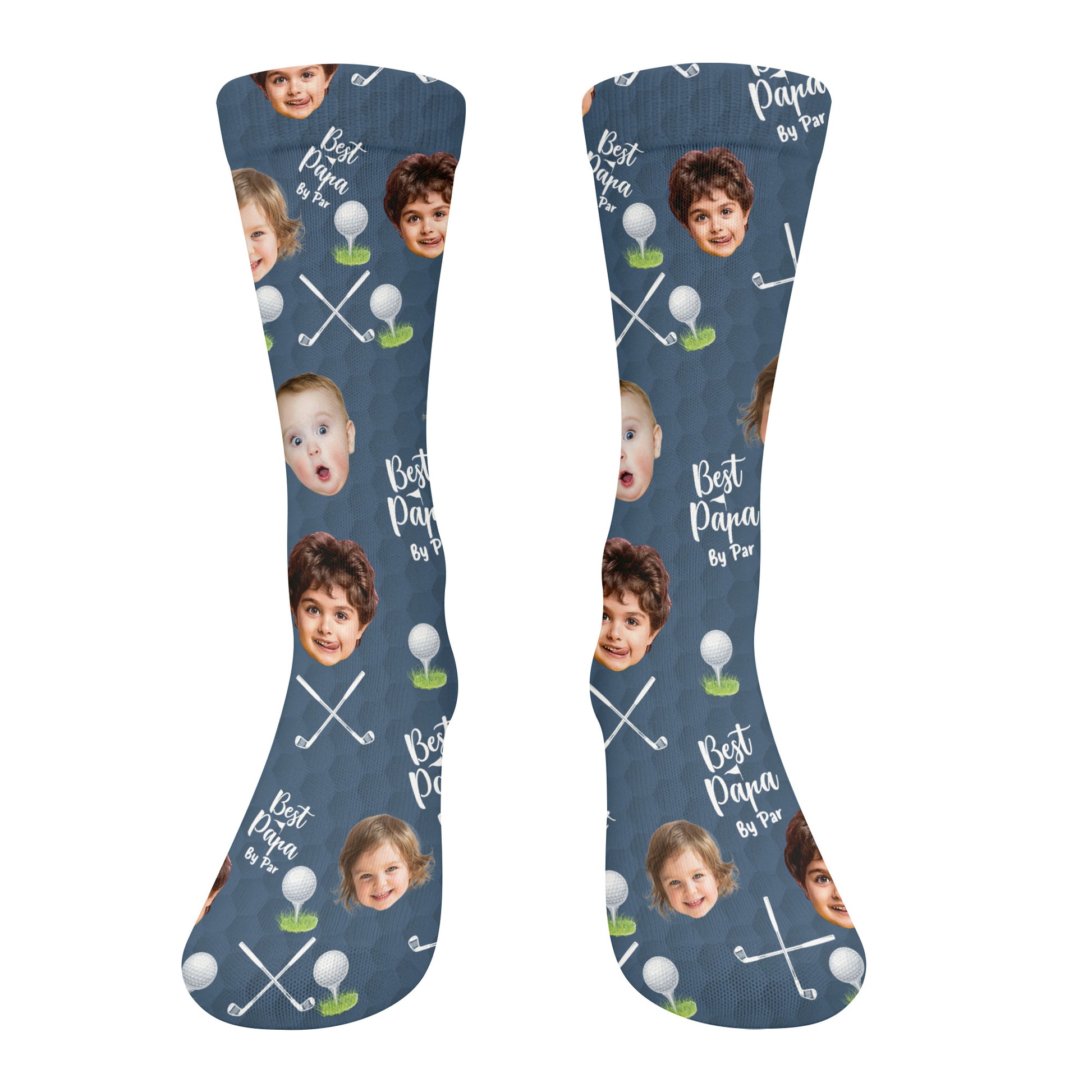 Best Dad By Par Custom Kids Face, Personalized Socks With Photos, Funny Crew Socks, Dad Golf Gift