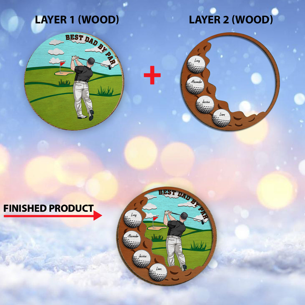 Best Dad By Par Personalized 2 Layered Wood Sign, Golf Decor, Golf Gifts For Dad