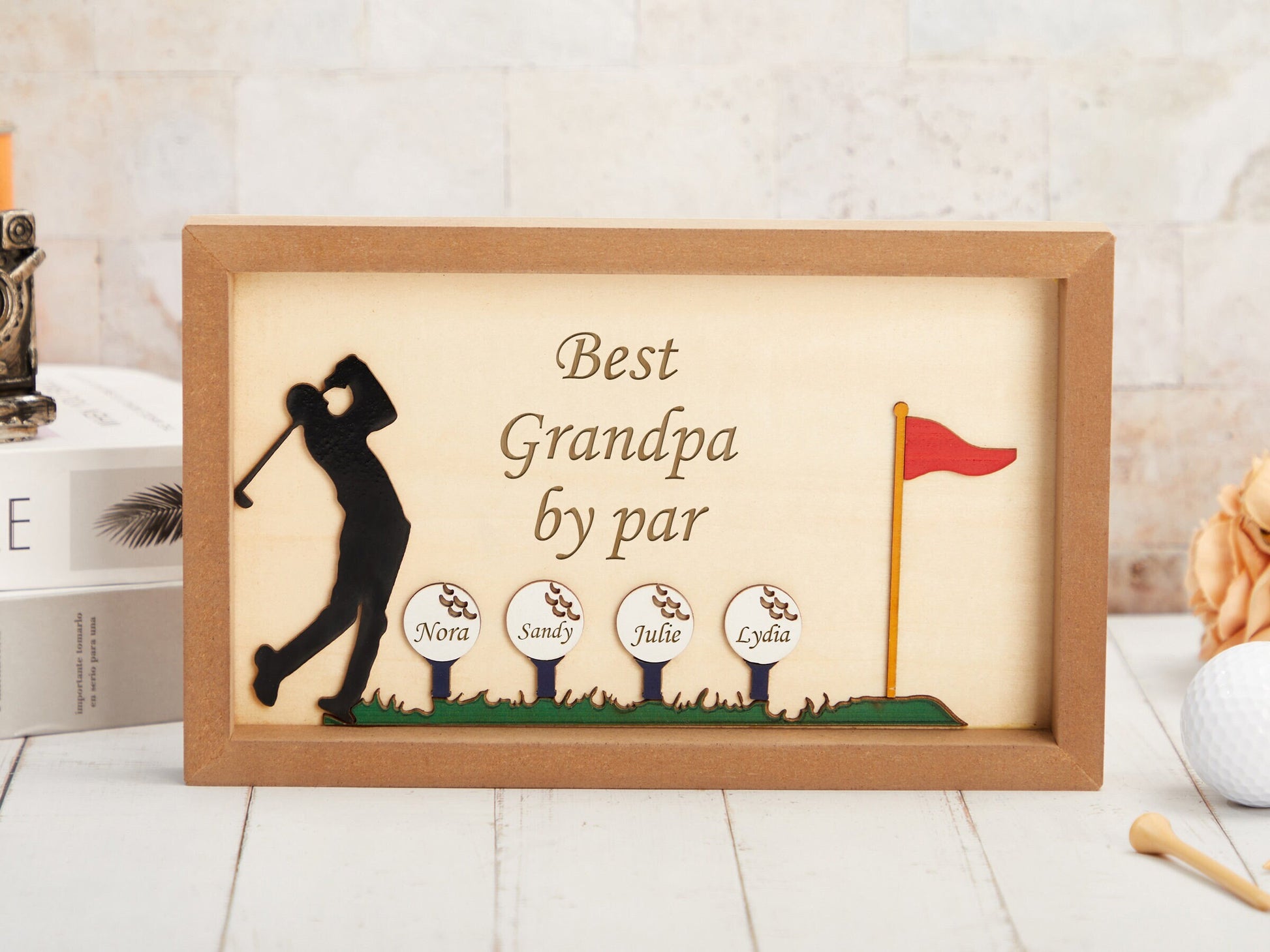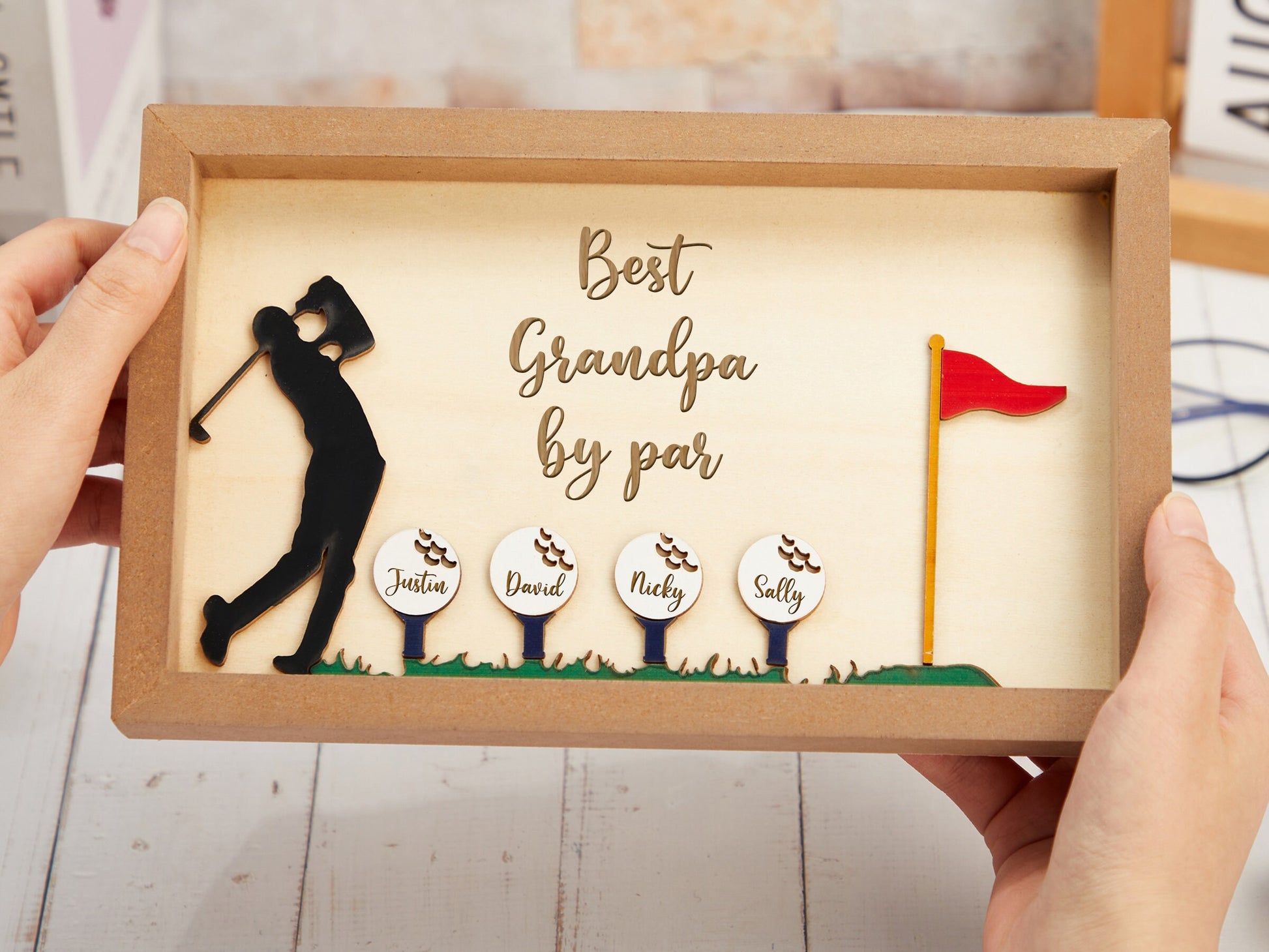Best Grandpa By Par Custom 2 Layered Wood Sign, Christmas Golf Gift, Gifts For Dad