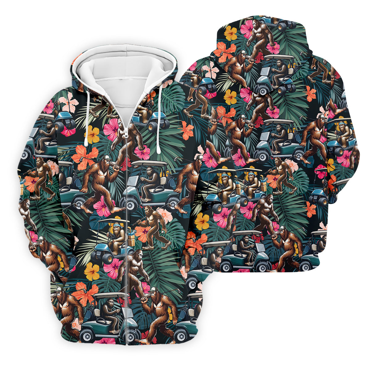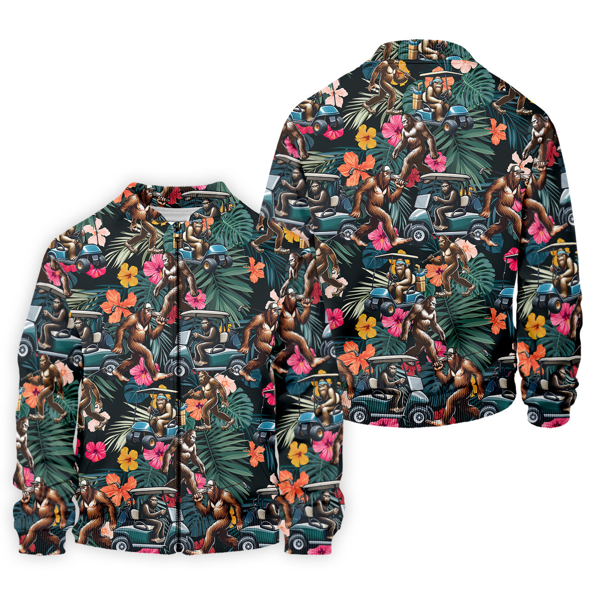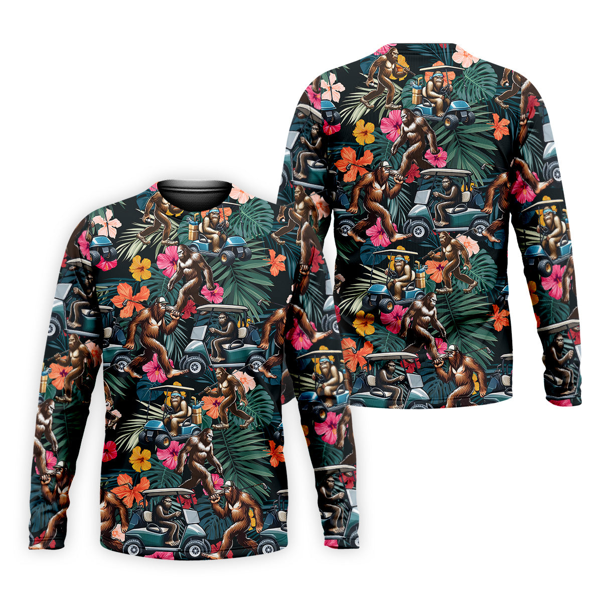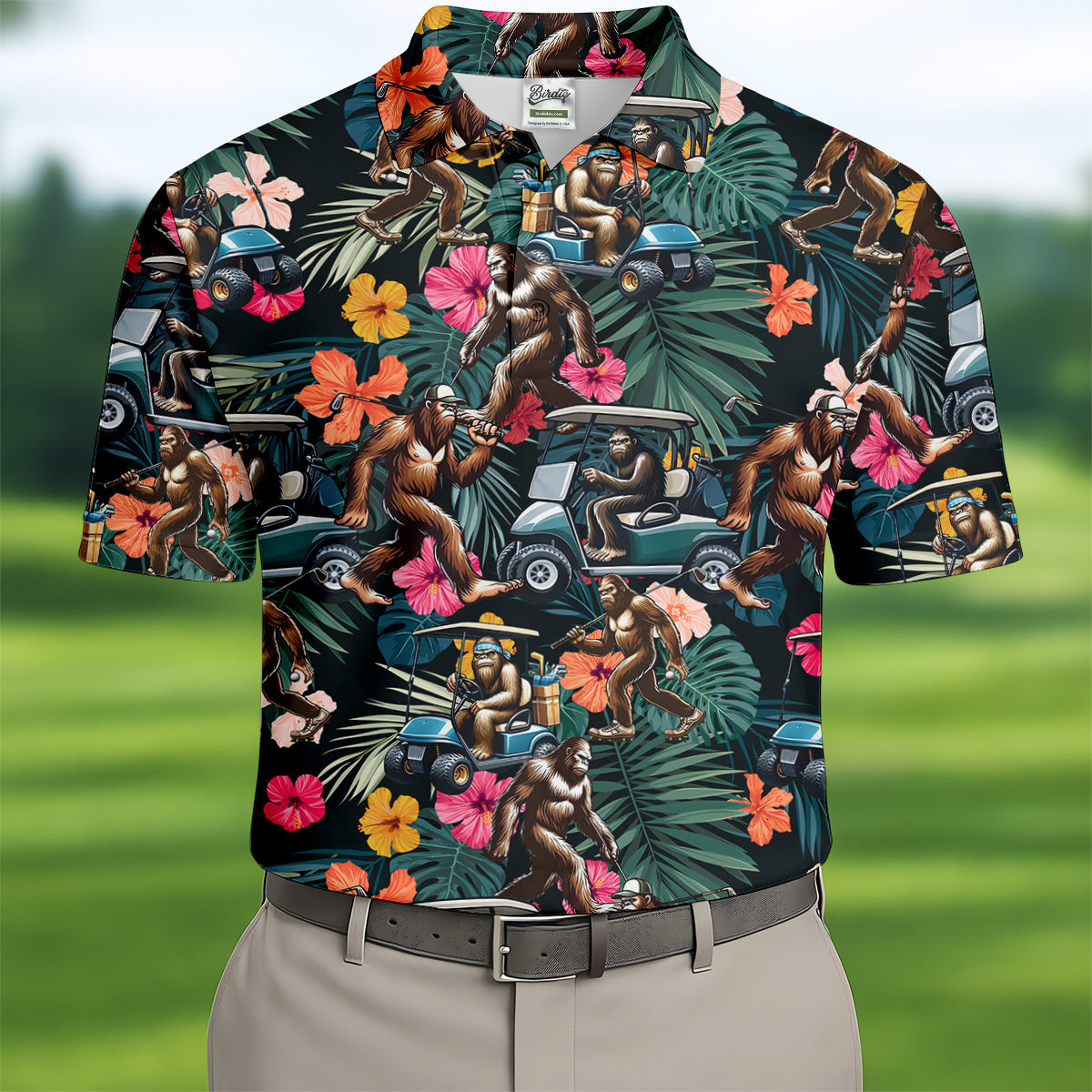 Bigfoot Golf Cart Tropical Floral Golf Tops For Men, Hawaiian Golf Shirts, Golf Gift For Men