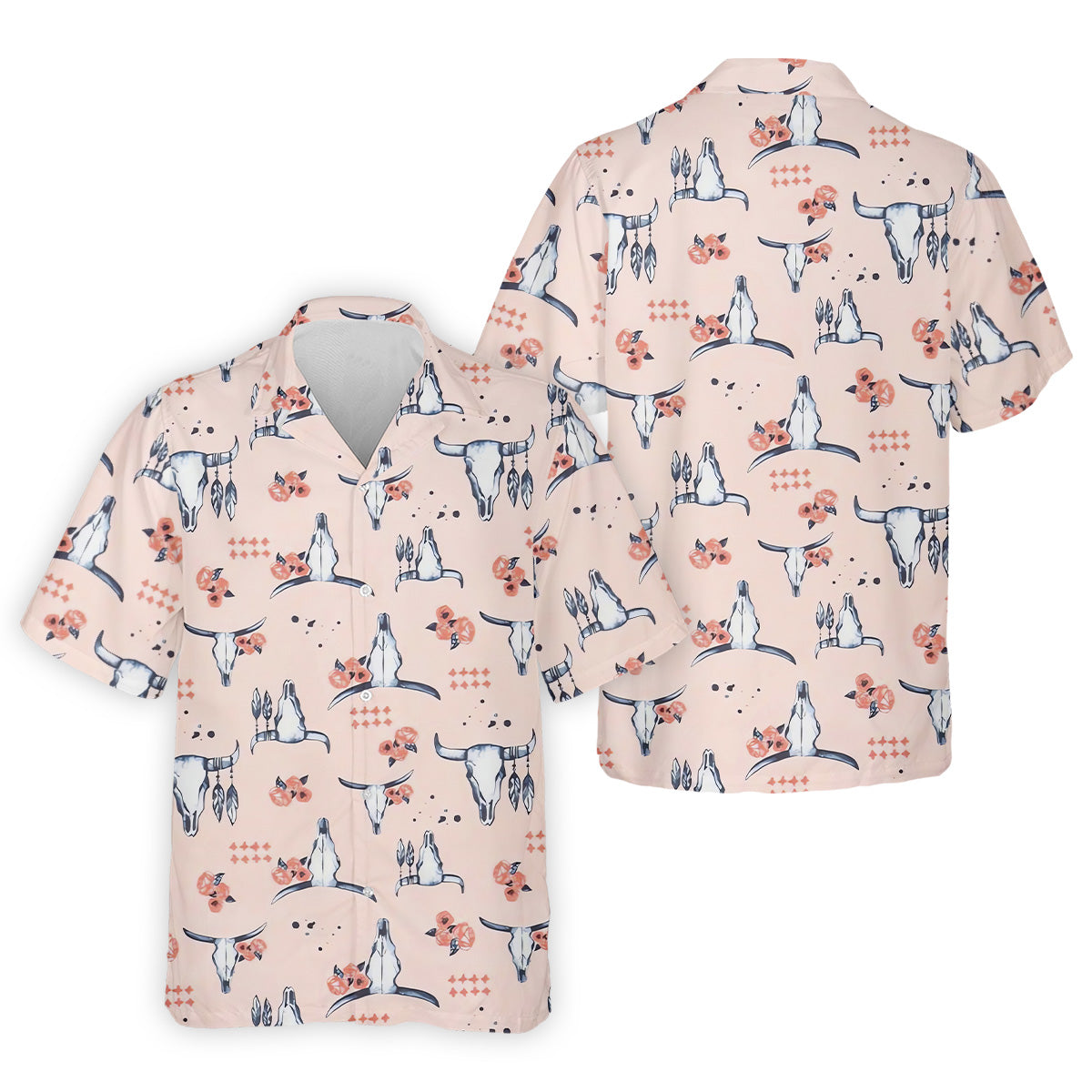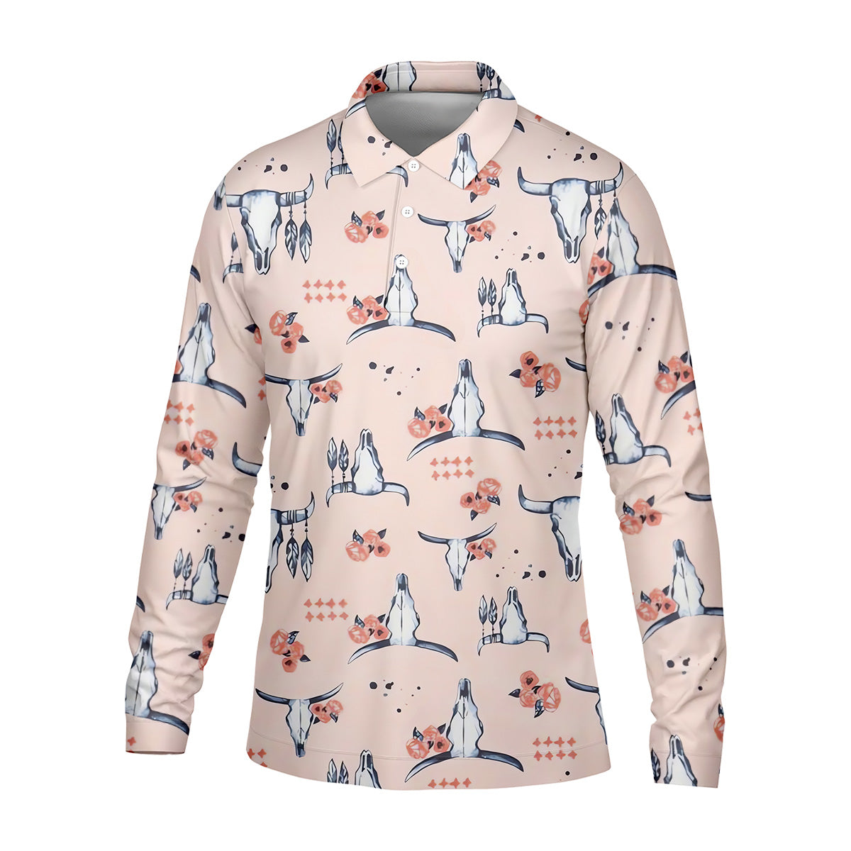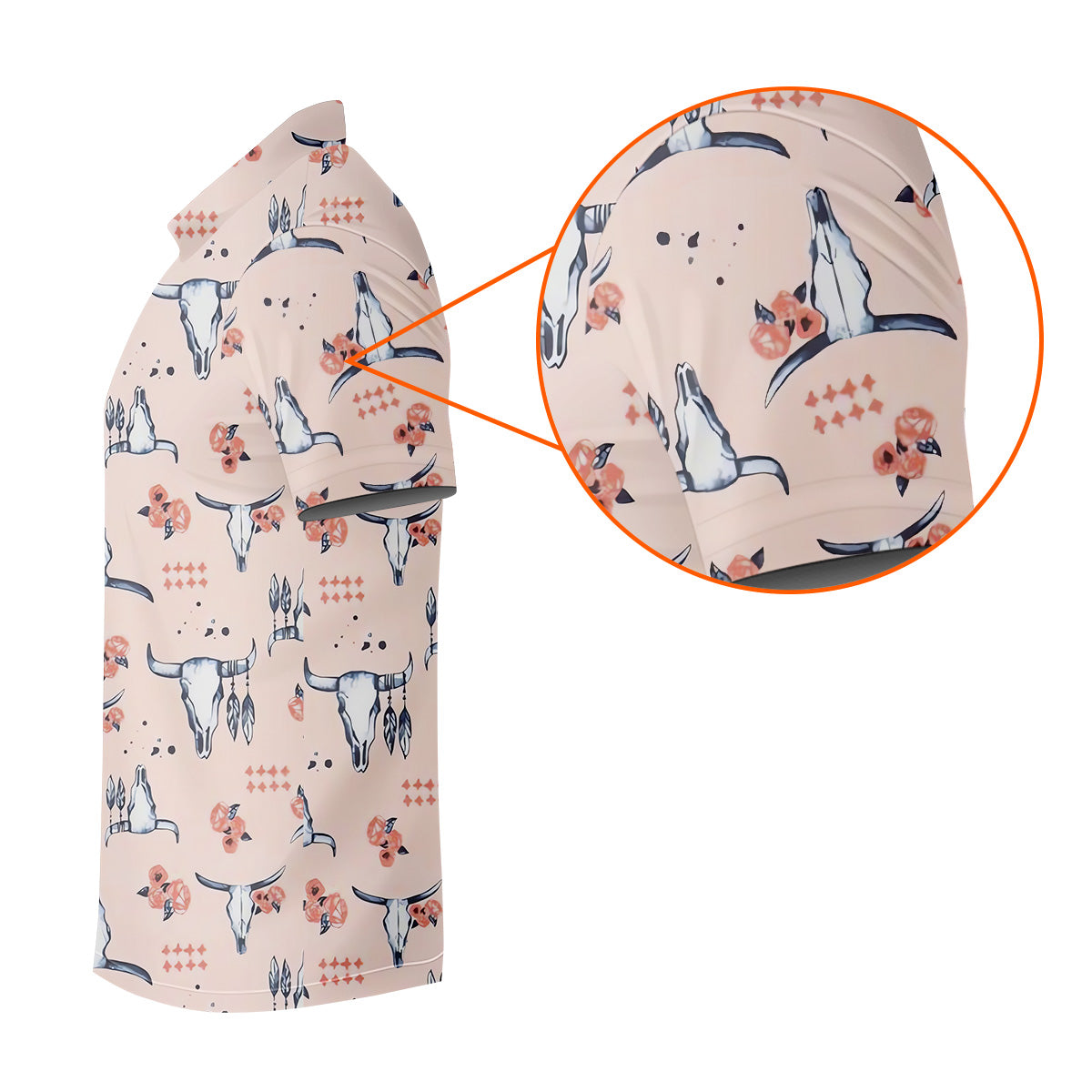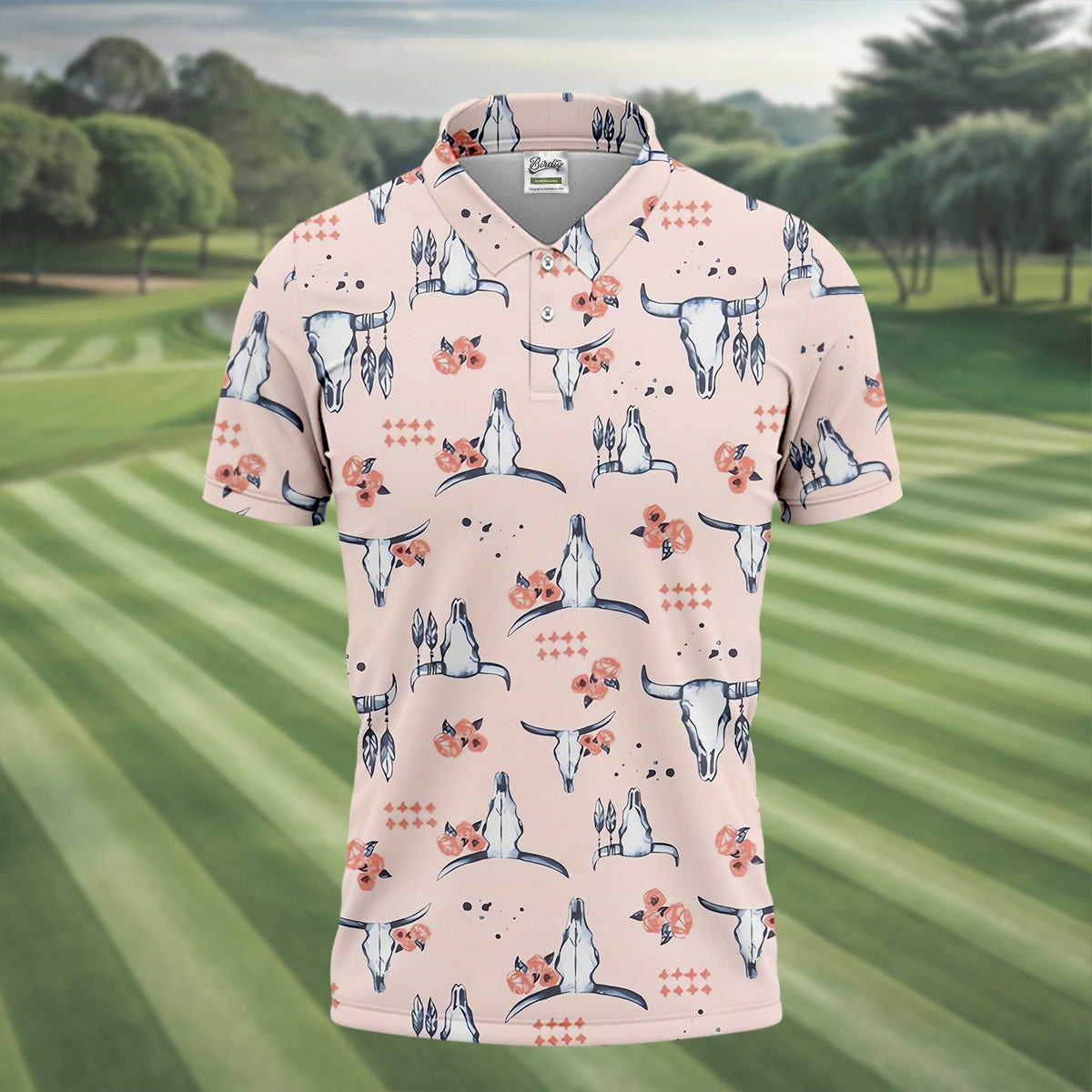 Boho Buffalo Skull Seamless Pattern Golf Tops For Men, Hawaiian Golf Shirts, Polo For Men