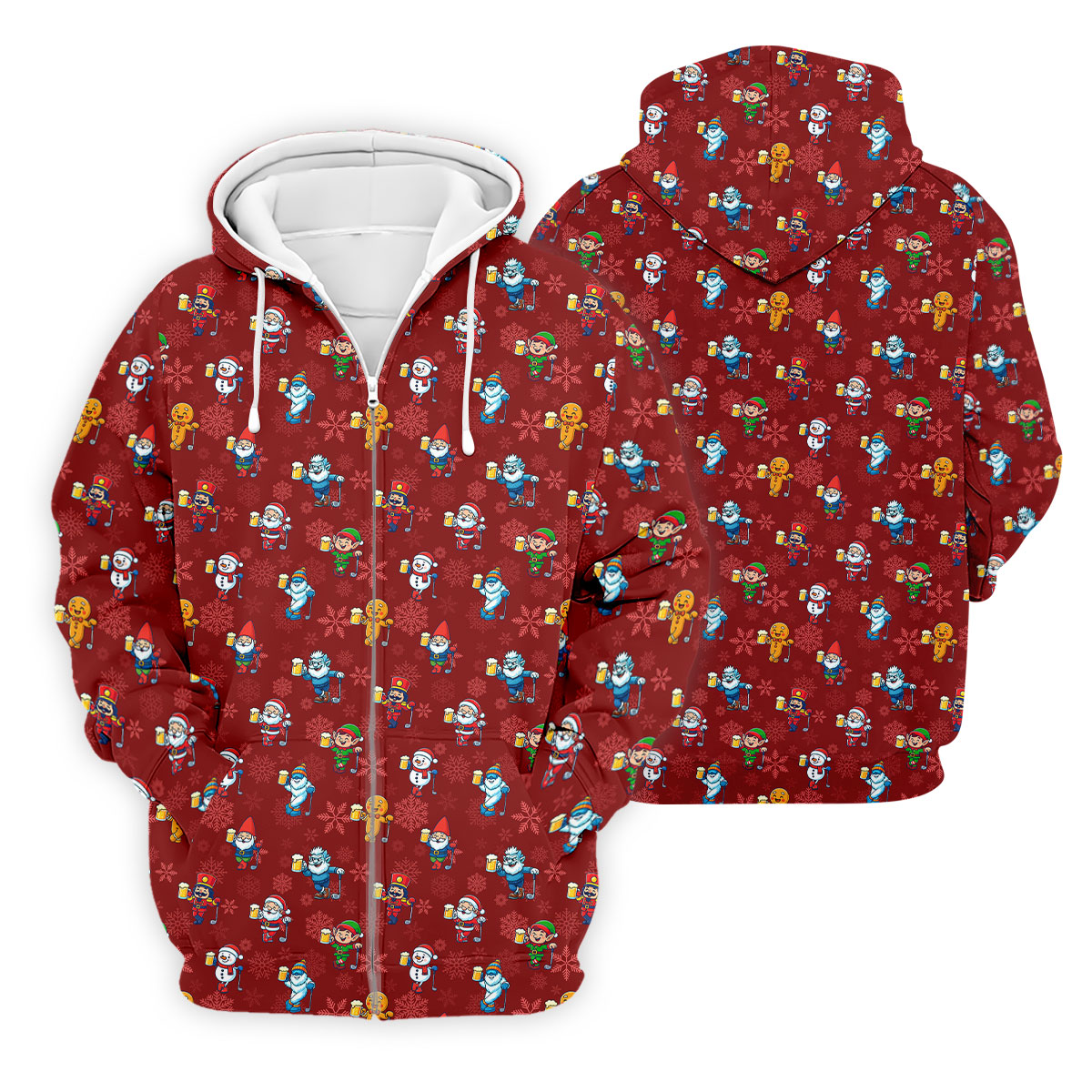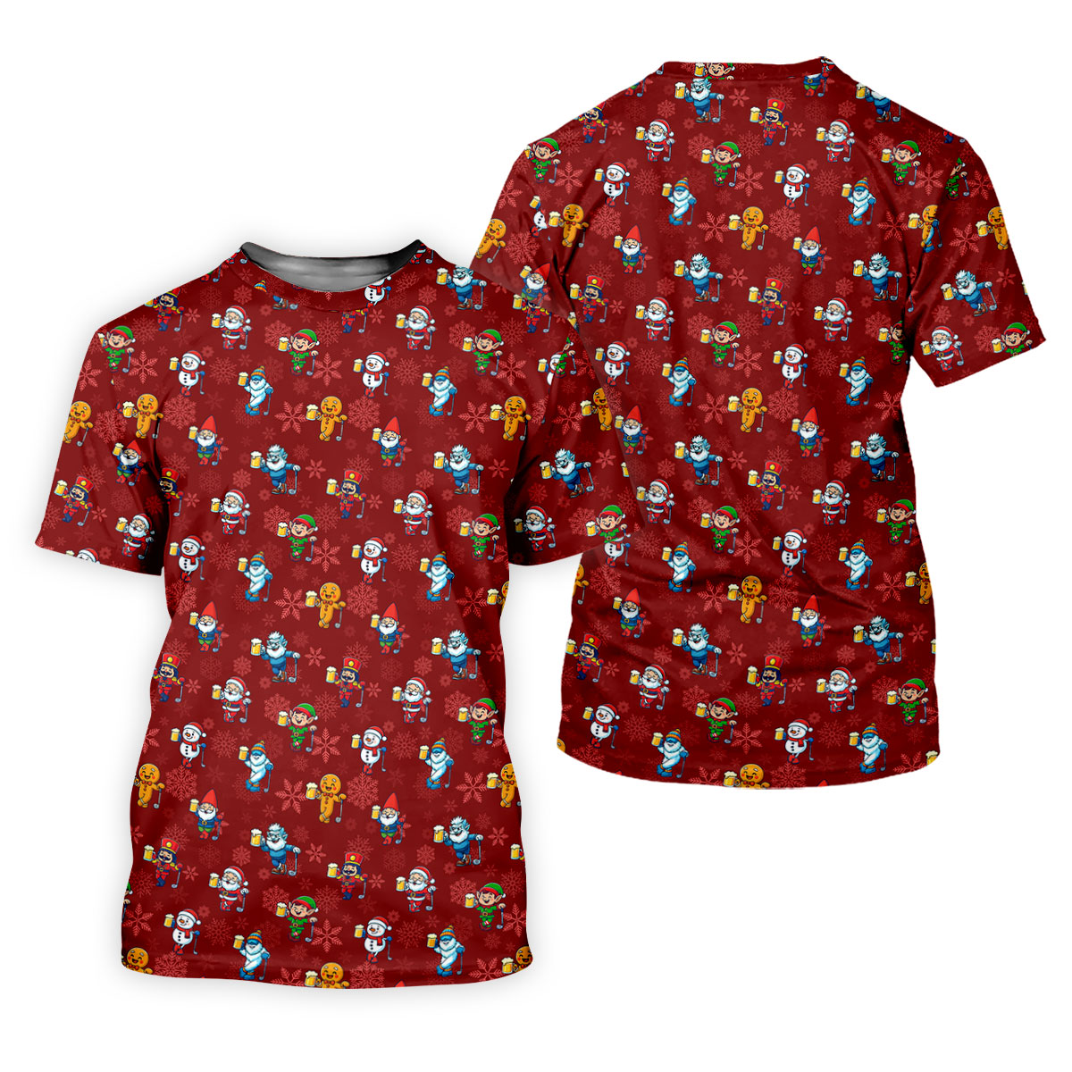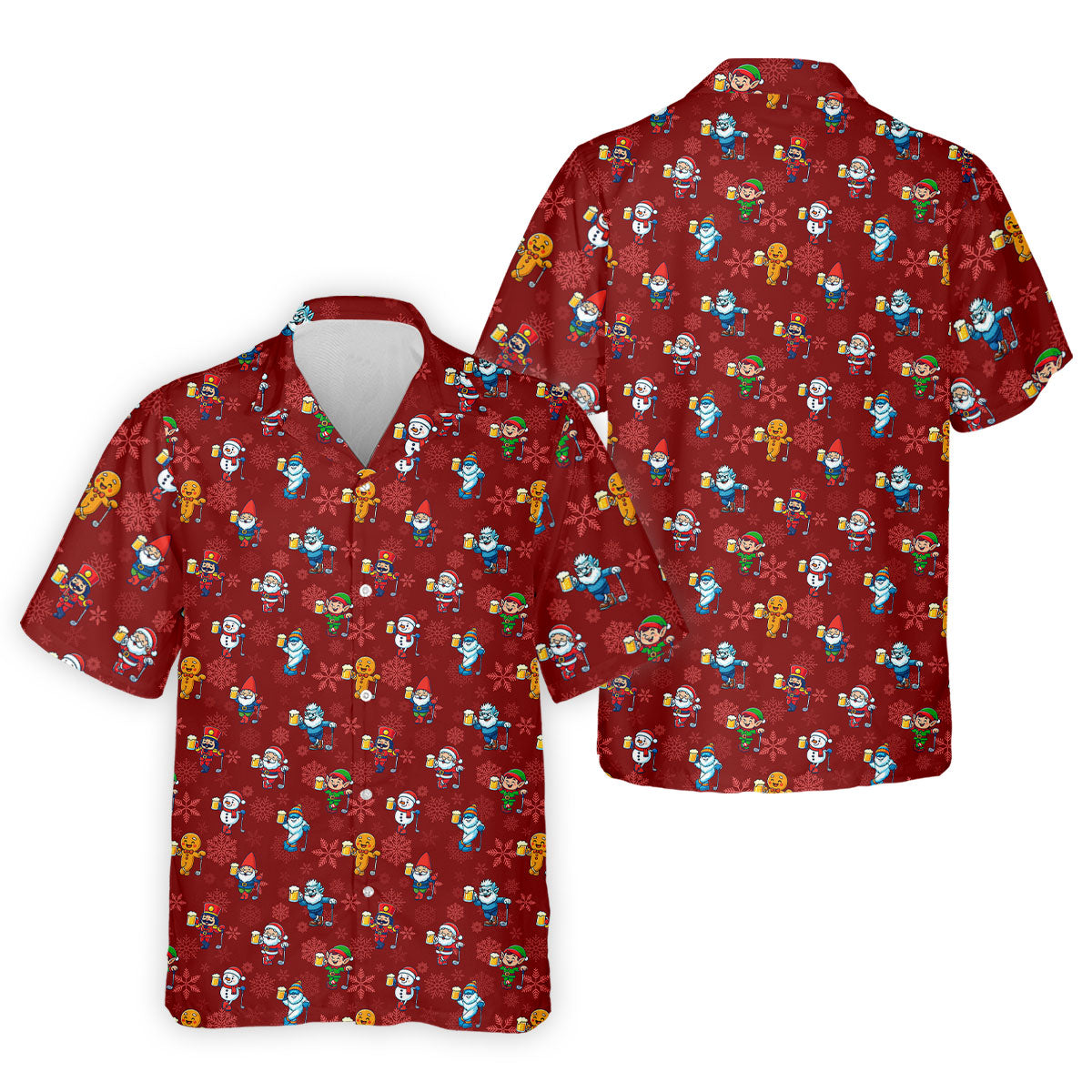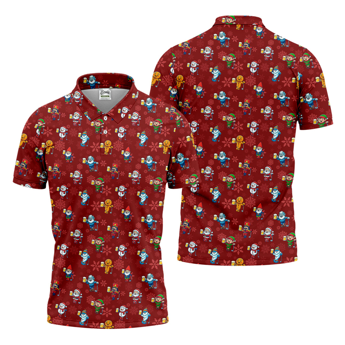 Christmas Characters Golf And Beer Red Men's Funny Golf Shirts, Christmas Golf Shirt, Polo Shirts For Men