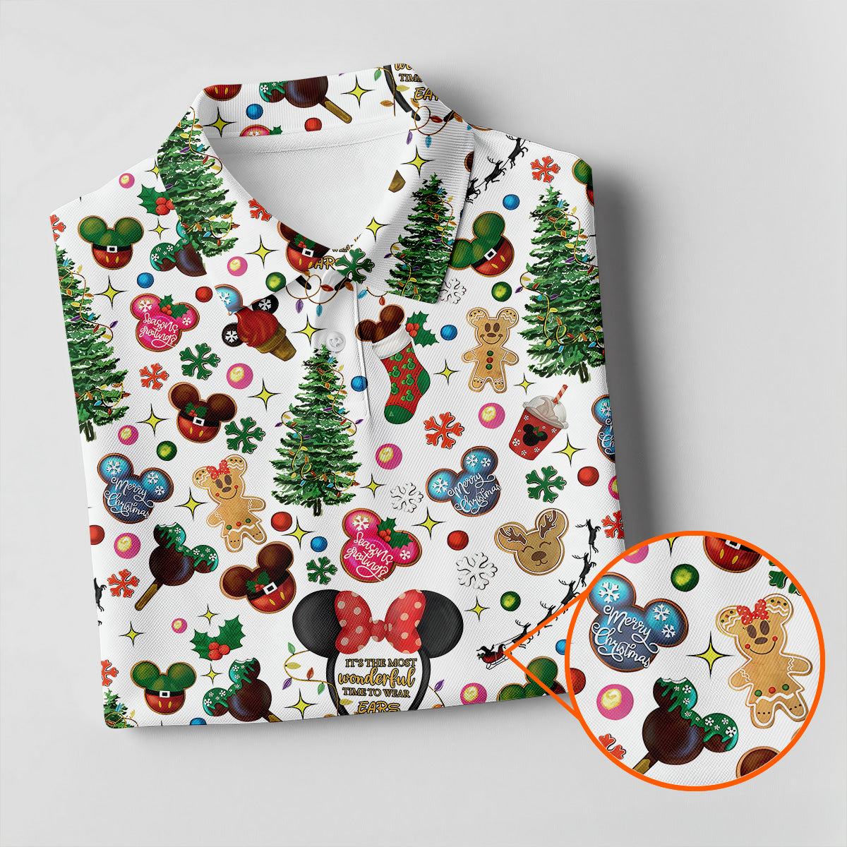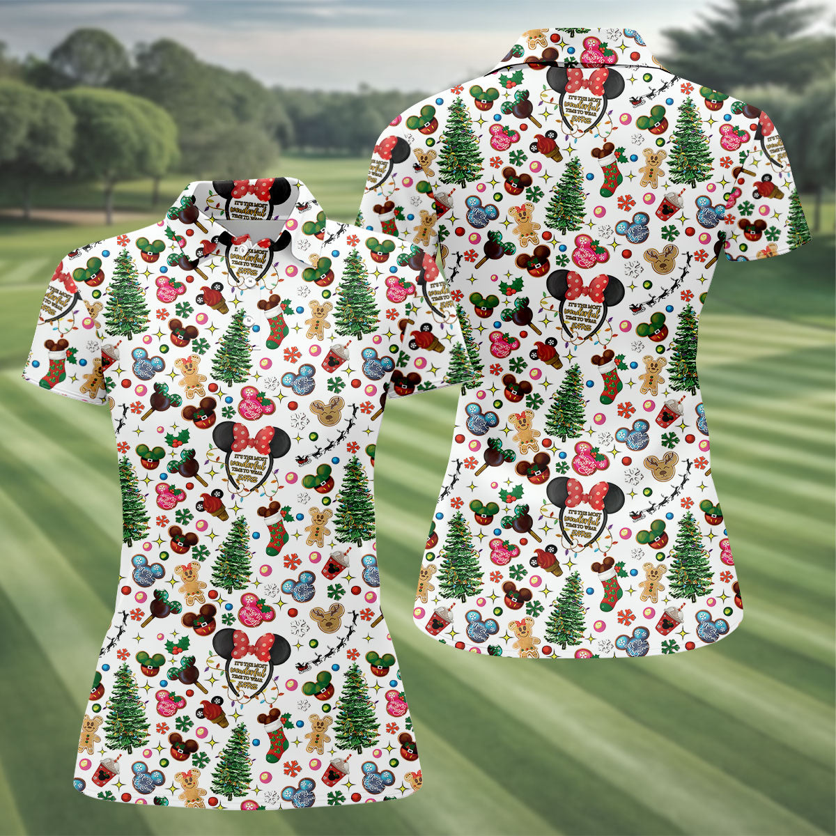 Christmas Cute Pattern Women Golf Top, Cartoon Print Ladies Golf Polos, Christmas Golf Shirt, Golfing Apparel