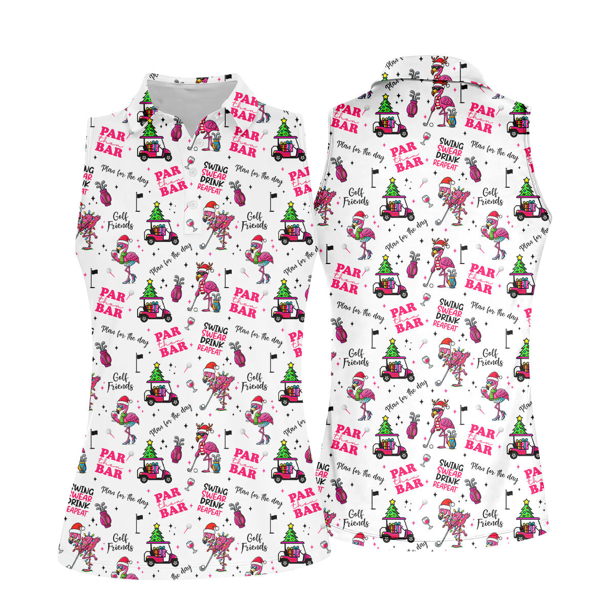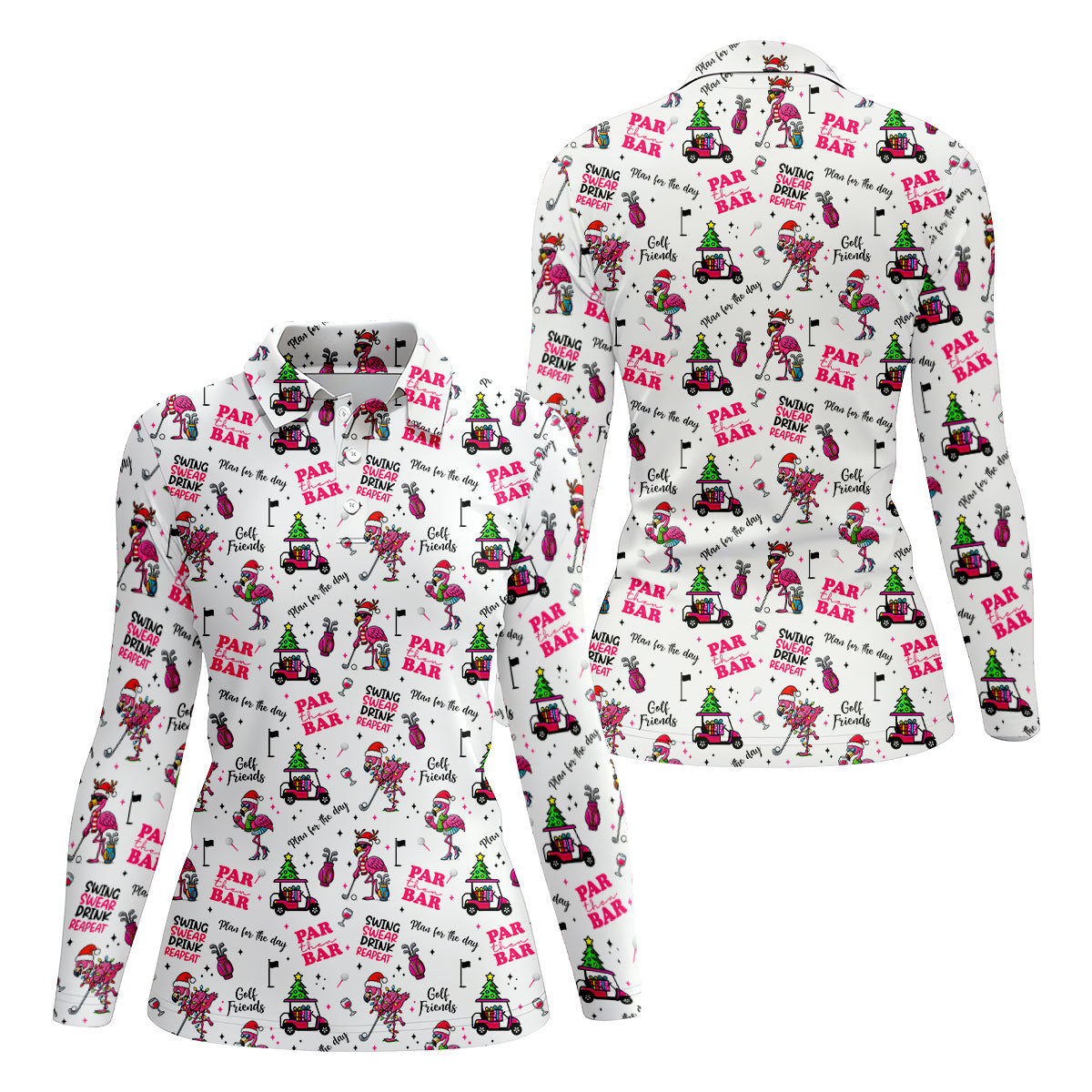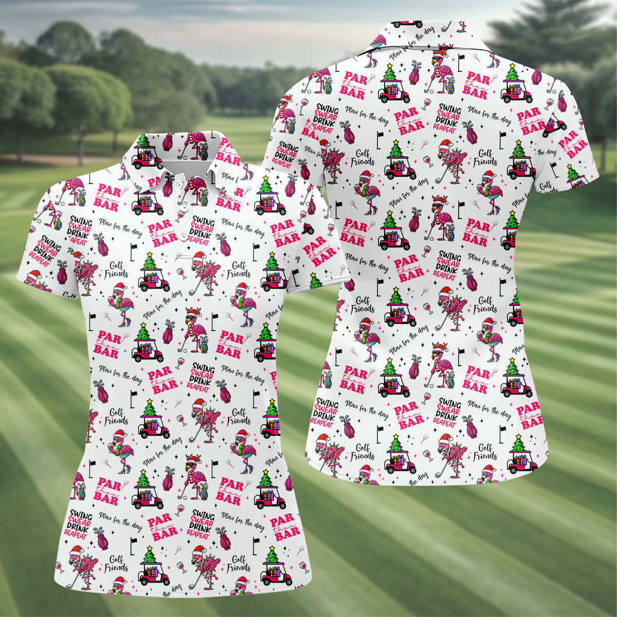 Christmas Flamingo Par Then Bar Women's Golf Shirts, Christmas Golf Shirt, Ladies Golf Shirts, Women's Golf Gifts