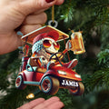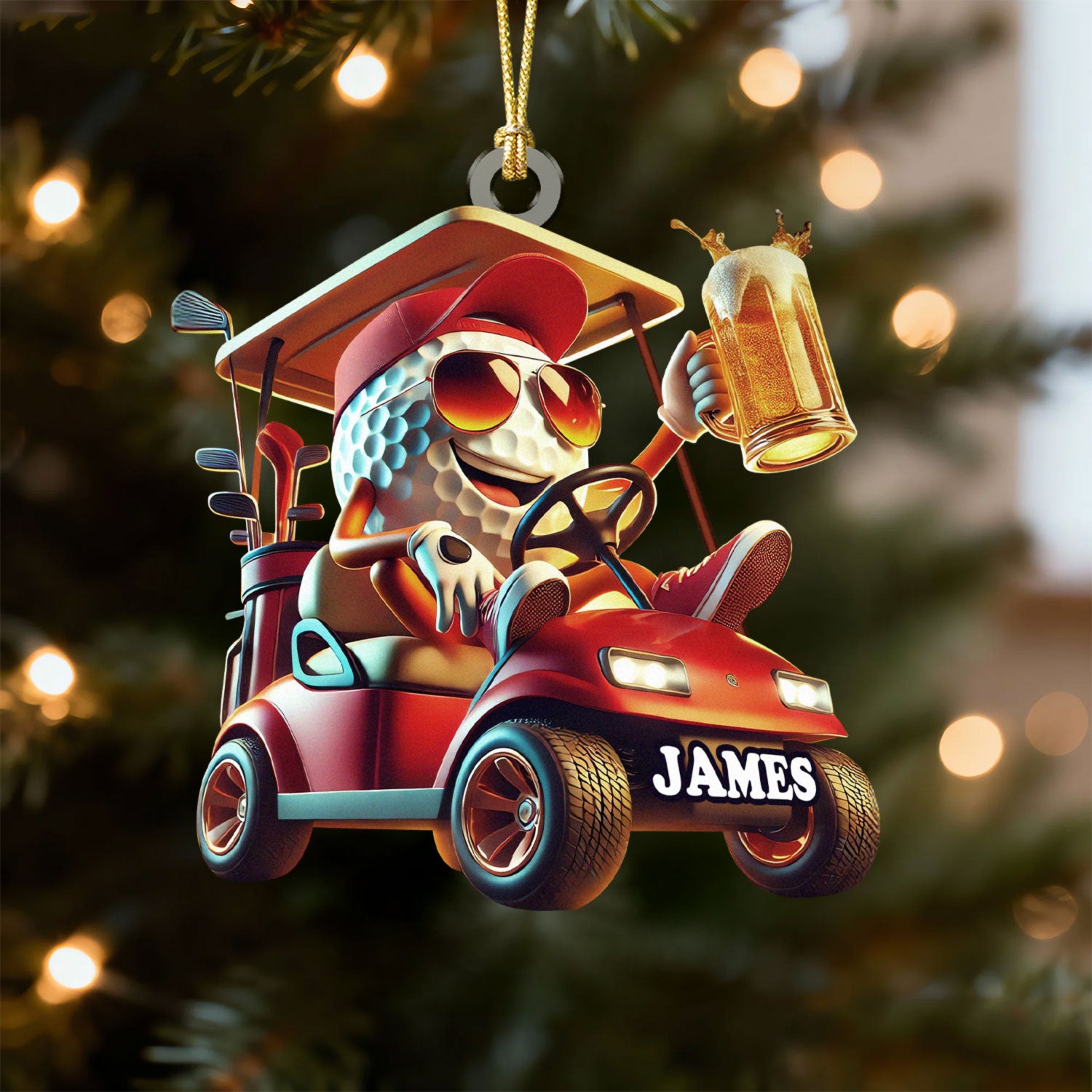 Cool Golf Ball Drinking Beer On Red Golf Cart Acrylic Ornament, Golf Xmas Ornaments, Golf Christmas Gifts