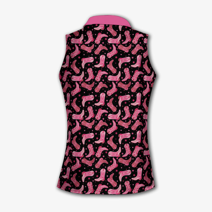 Cowgirl Black And Pink Womens Golf Polo Shirts, Western Golf Shirts Women, Patterned Golf Shirts