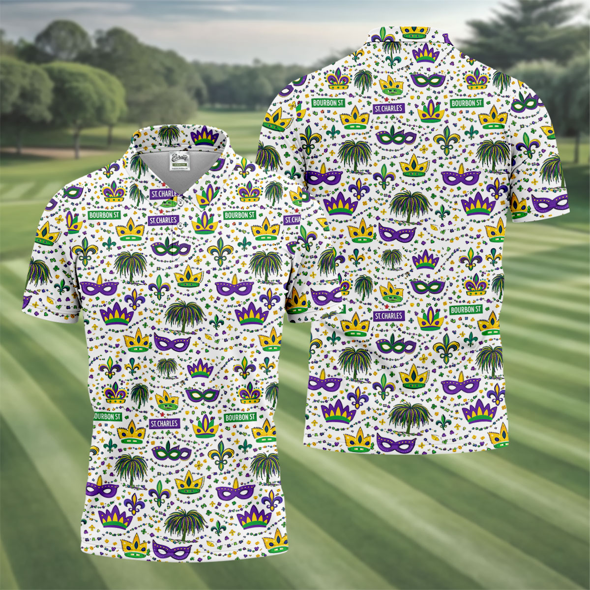 Whether you’re teeing off during Mardi Gras week, playing a themed tournament, or just looking for an excuse to bring festival vibes to the course — this shirt shows up ready to celebrate.