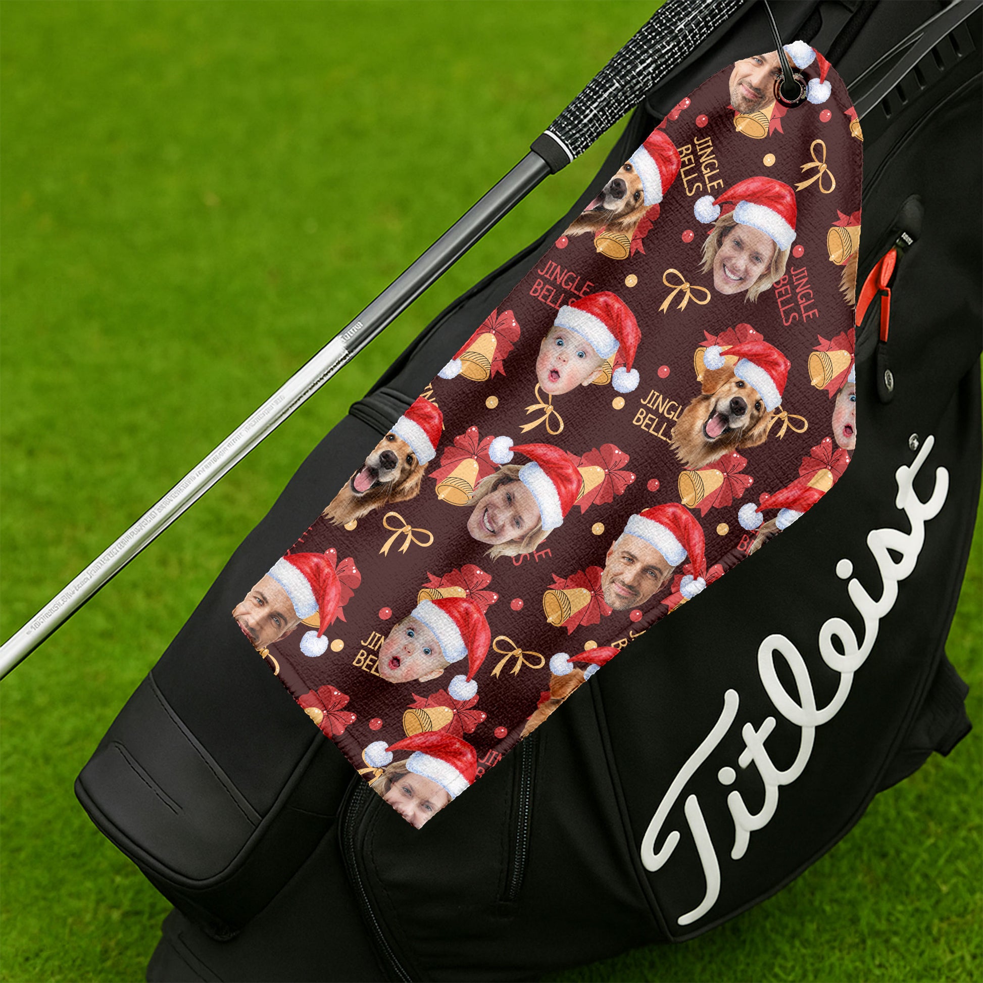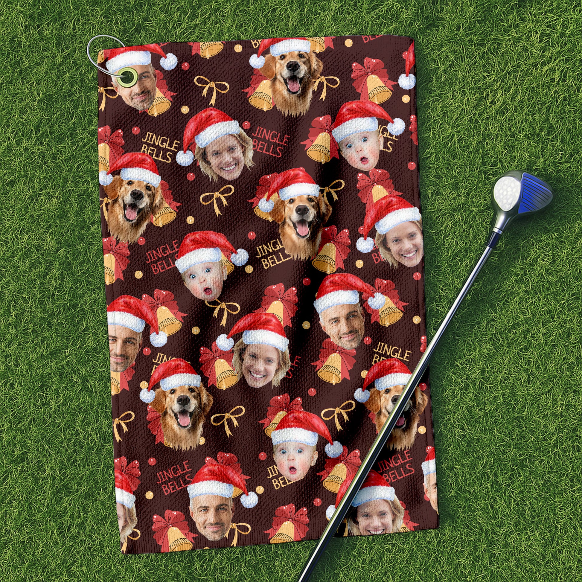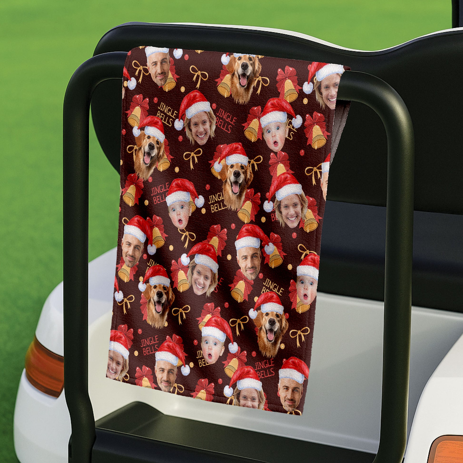 Custom Face Christmas Jingle Bells Brown Golf Towels, Christmas Golf Gift, Custom Golf Accessories