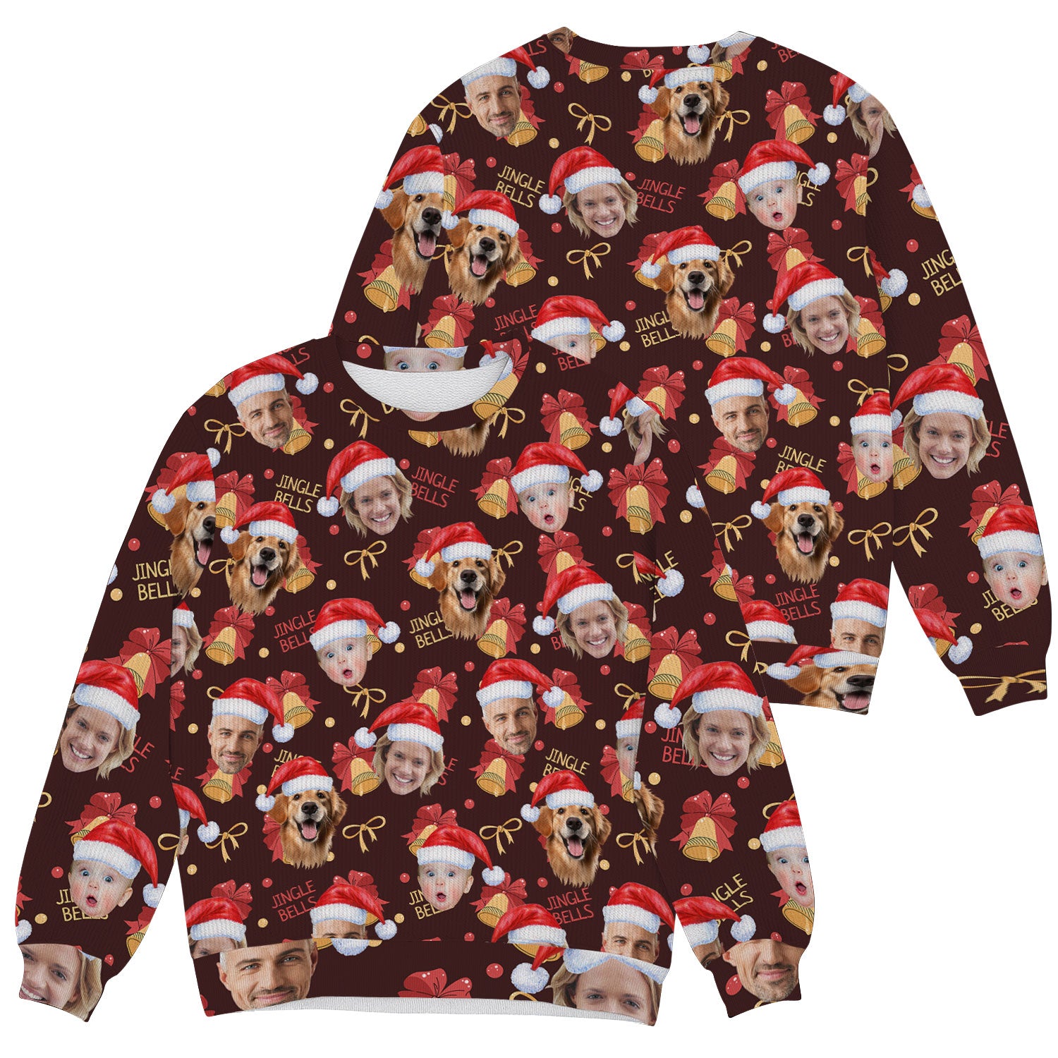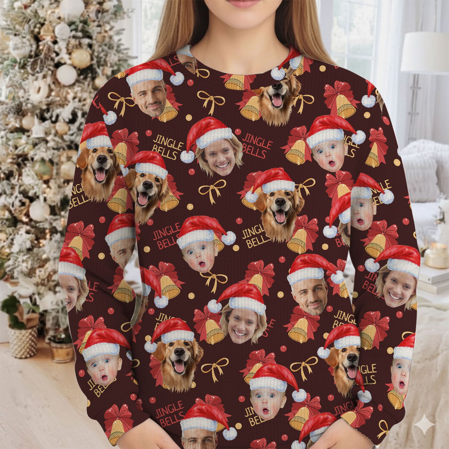 Custom Face Christmas Jingle Bells Brown Golf Ugly Sweater, Christmas Golf Shirt, Golf Sweater