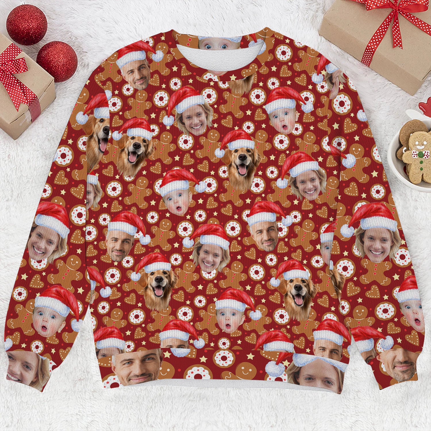 Custom Face Gingerbread Man Christmas Red Golf Ugly Sweater, Christmas Golf Shirt, Golf Sweater